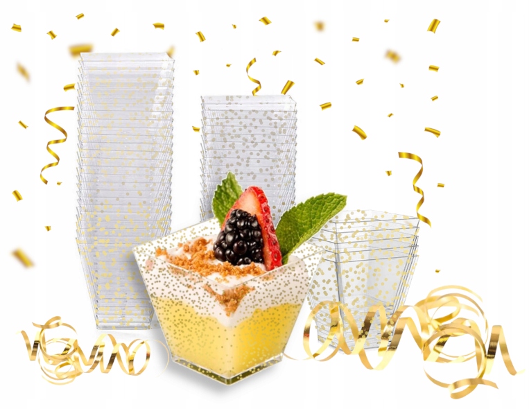 POJEMNIKI PUCHARKI KWADRATOWE DO DESERÓW SŁODKI STÓŁ BUFET 60ML 50szt MIX