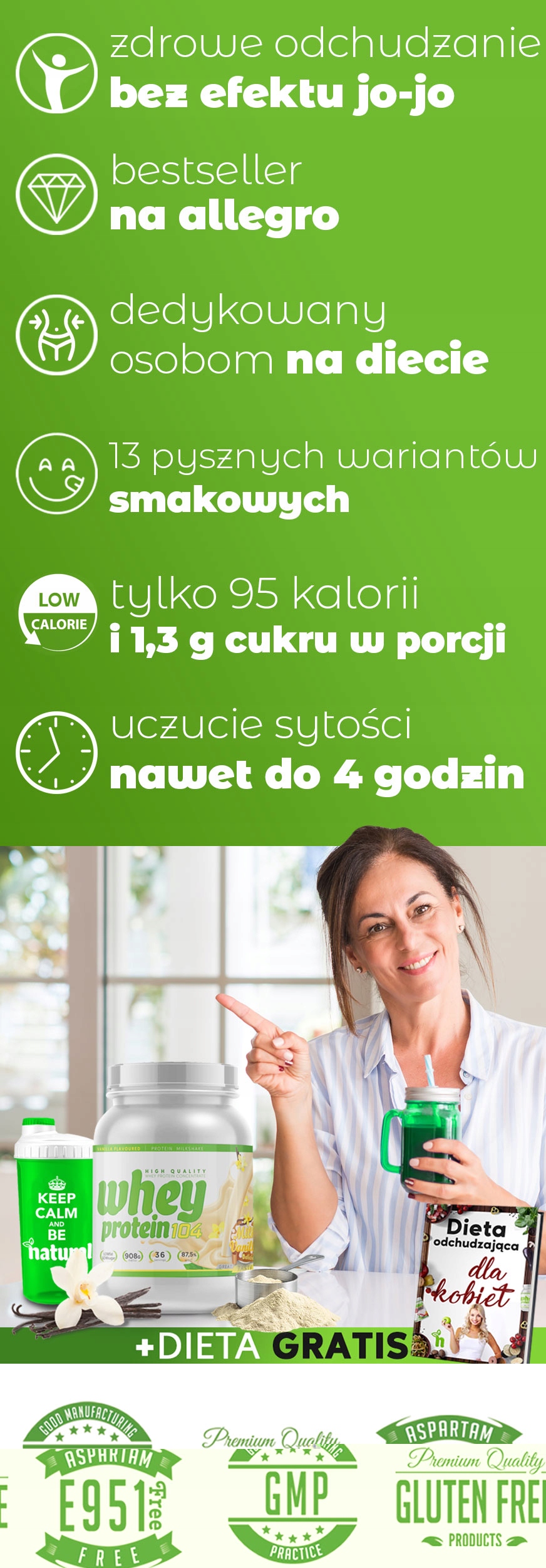 Наши коктейли не только эффективны и вкусны, но и являются правильным подходом к здоровью. Слишком жесткая диета и резкое сокращение калорий не только окажут эффект, противоположный запланированному, но и могут оказать негативное влияние на ваше здоровье. Принимая Whey Protein 104 вместе с прилагаемой к нему бесплатной диетой, мы можем быть уверены, что худеем относительно безопасно. Килограмма мы теряем постепенно, по три-четыре (иногда чуть больше) в месяц, и это оптимальная скорость похудения для нашего организма. Только тогда наш организм не будет голодать и не потеряет ценные питательные вещества, микро- и макроэлементы, необходимые для правильного функционирования. А после завершения лечения у нас гораздо больше шансов избежать эффекта йо-йо.