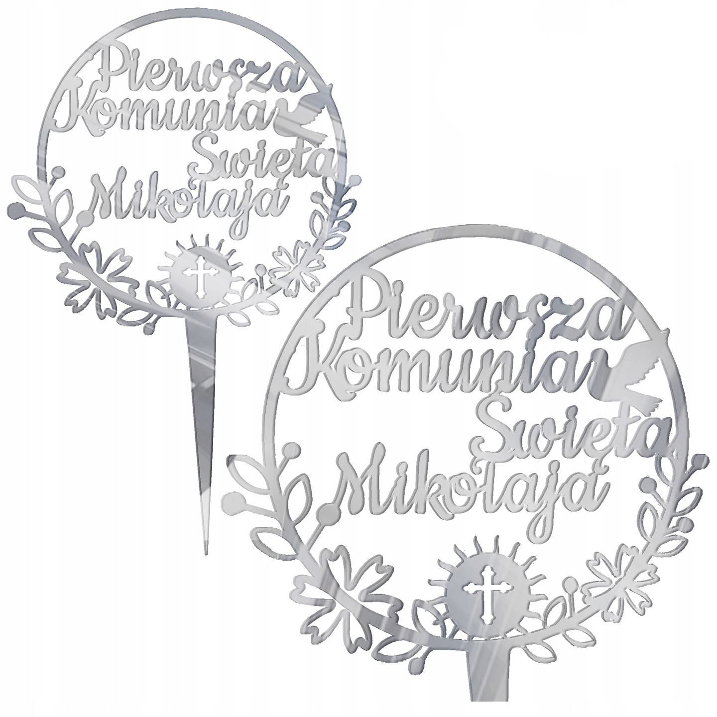 Украшение топпер название надпись торт Святой Причастие Плексиглас Серебряное зеркало 15x21