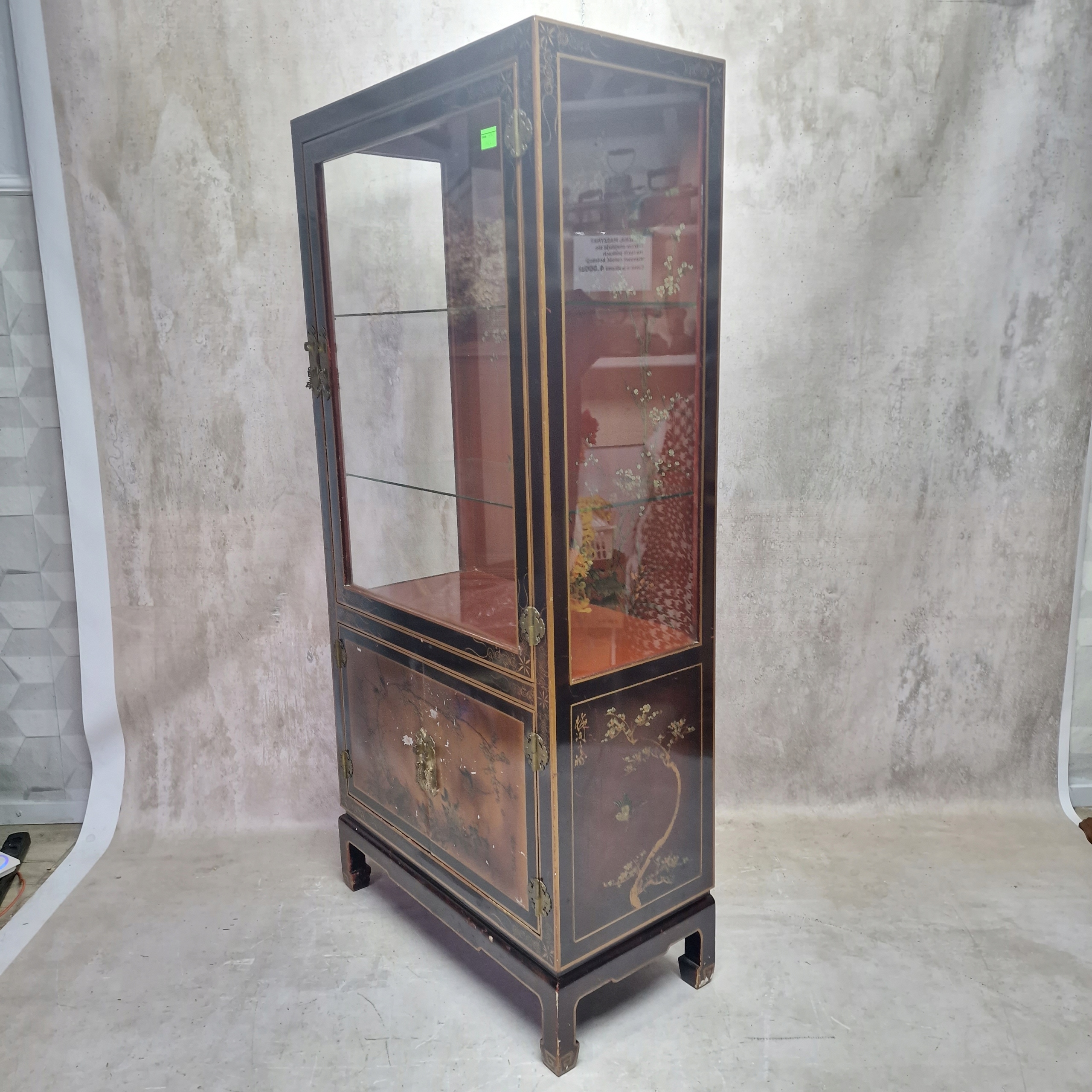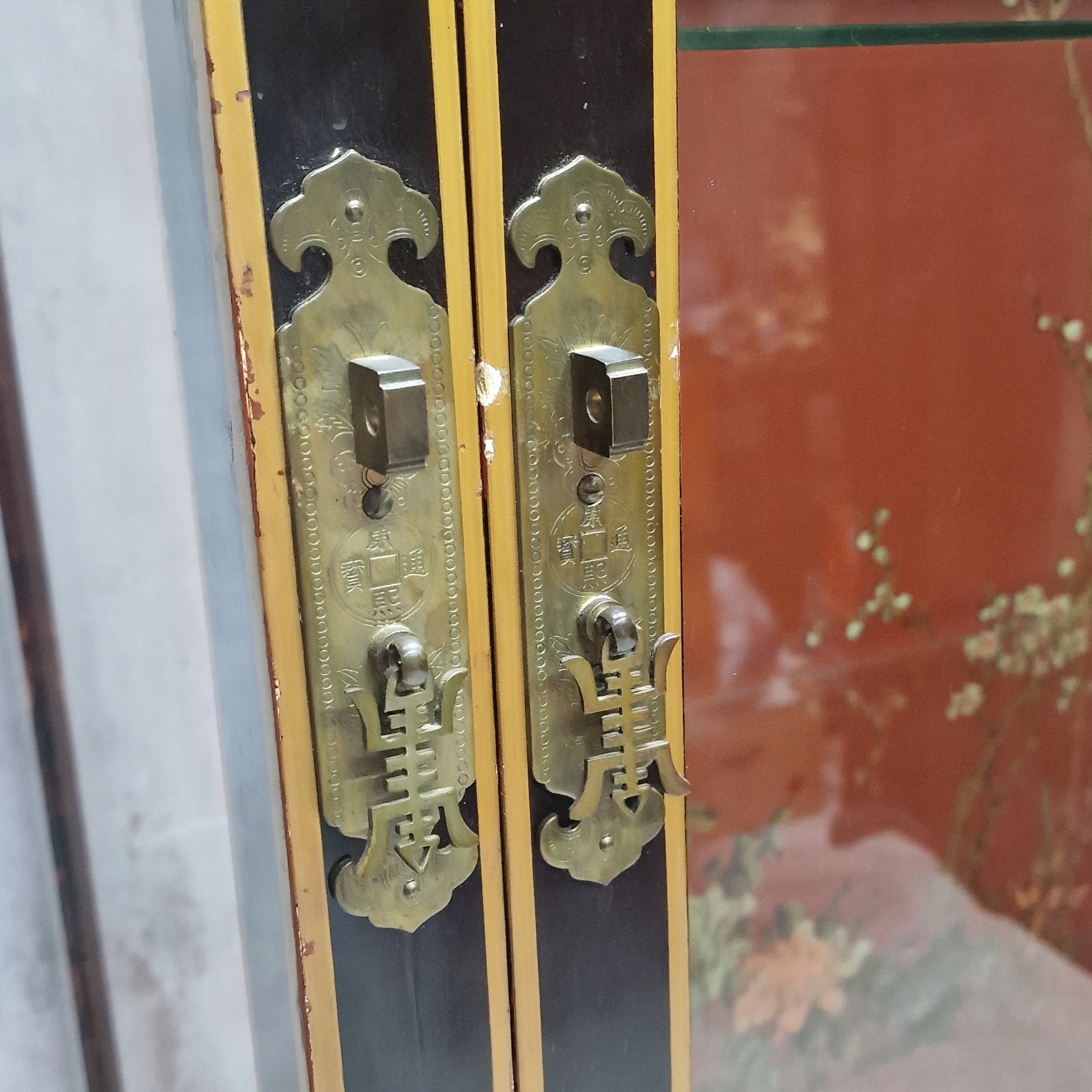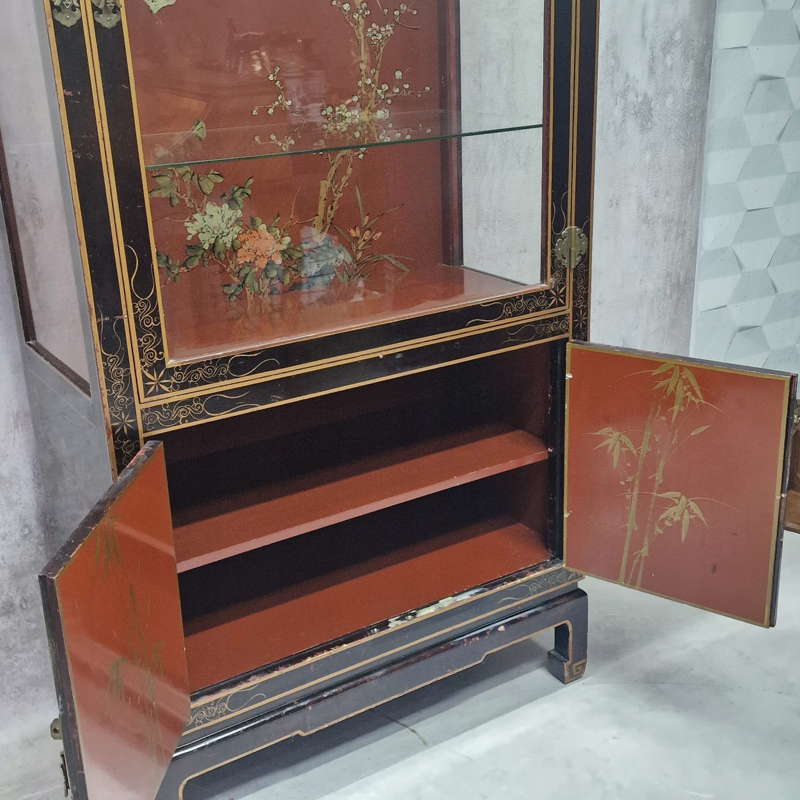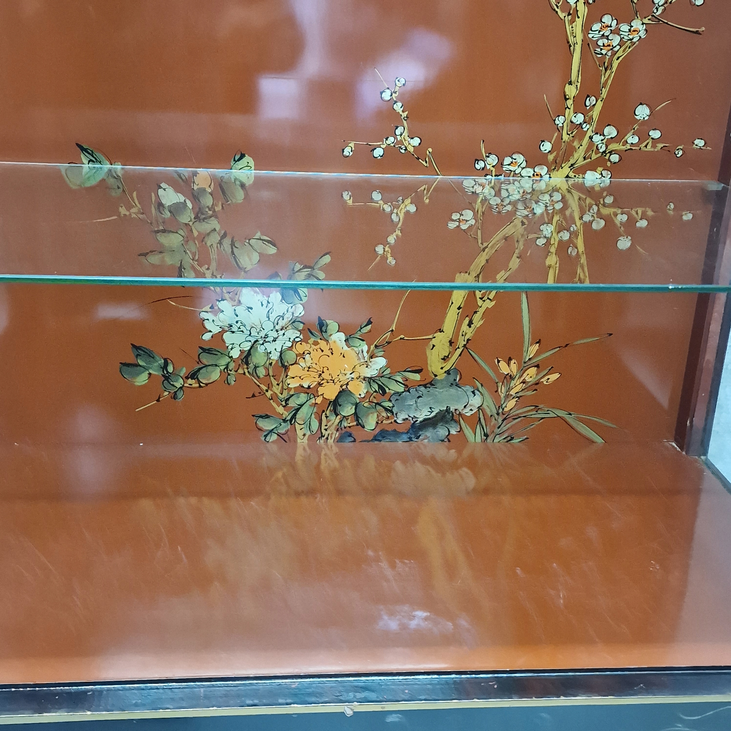 Восточный шкаф из лакированного дерева декорирован вручную, а не на машине. .