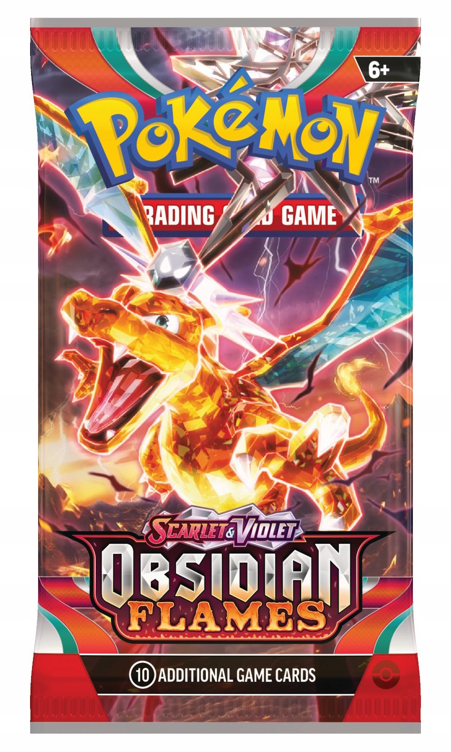 obsidian flames Booster Pac B> Single Booster Pack , содержит 10 случайных карт из коллекции более 190 дизайнов, доступных в издании и основной энергии. Кроме того, каждый пакет содержит карту с кодом игры Pokémon TCG.