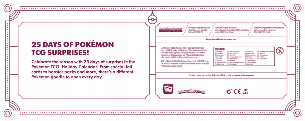 Pokémon TCG: календарь праздничного календаря 2025