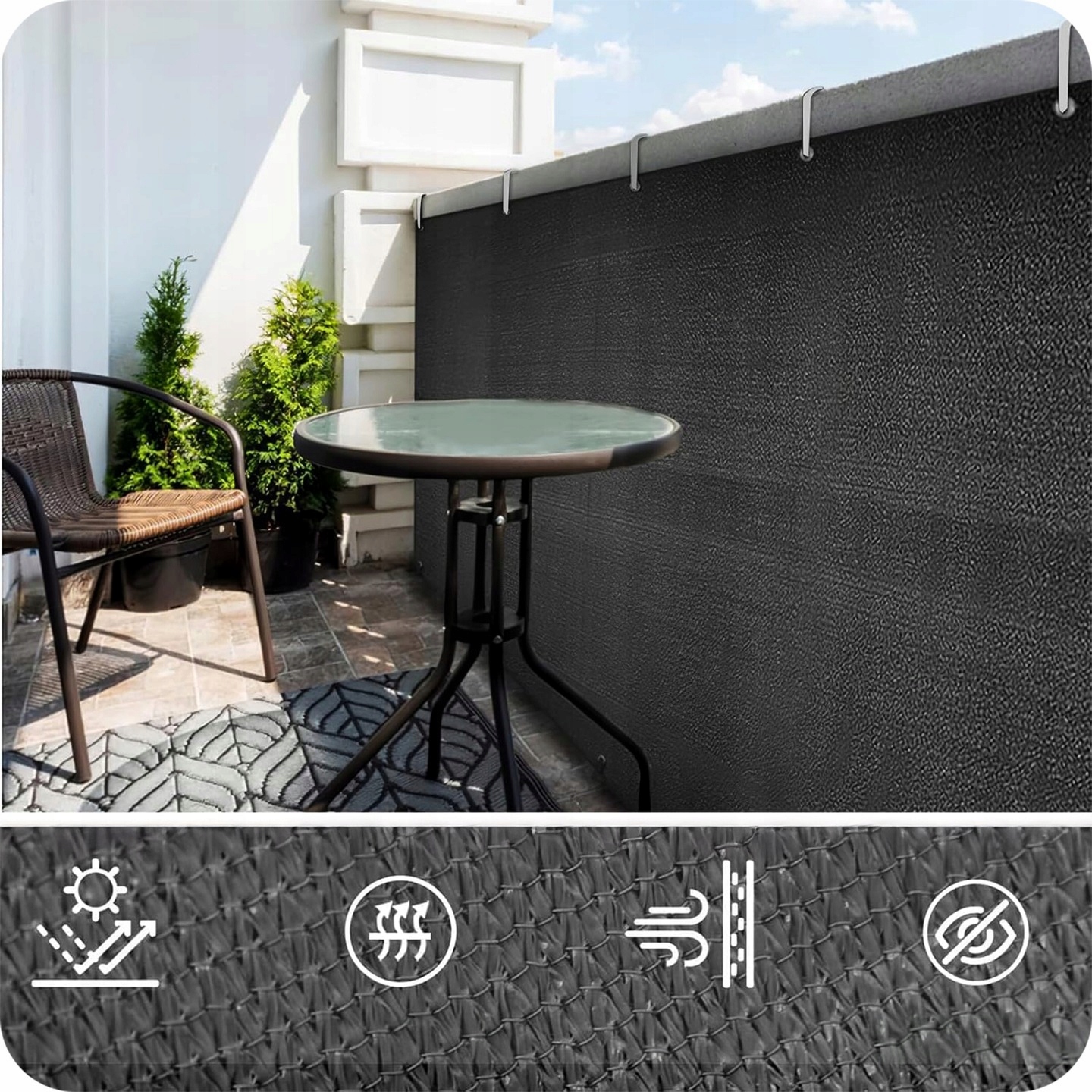 Идеально подходит для покрытия балконов, террасов и заборов, обеспечения конфиденциальности и защиты от условий атмосферная установка