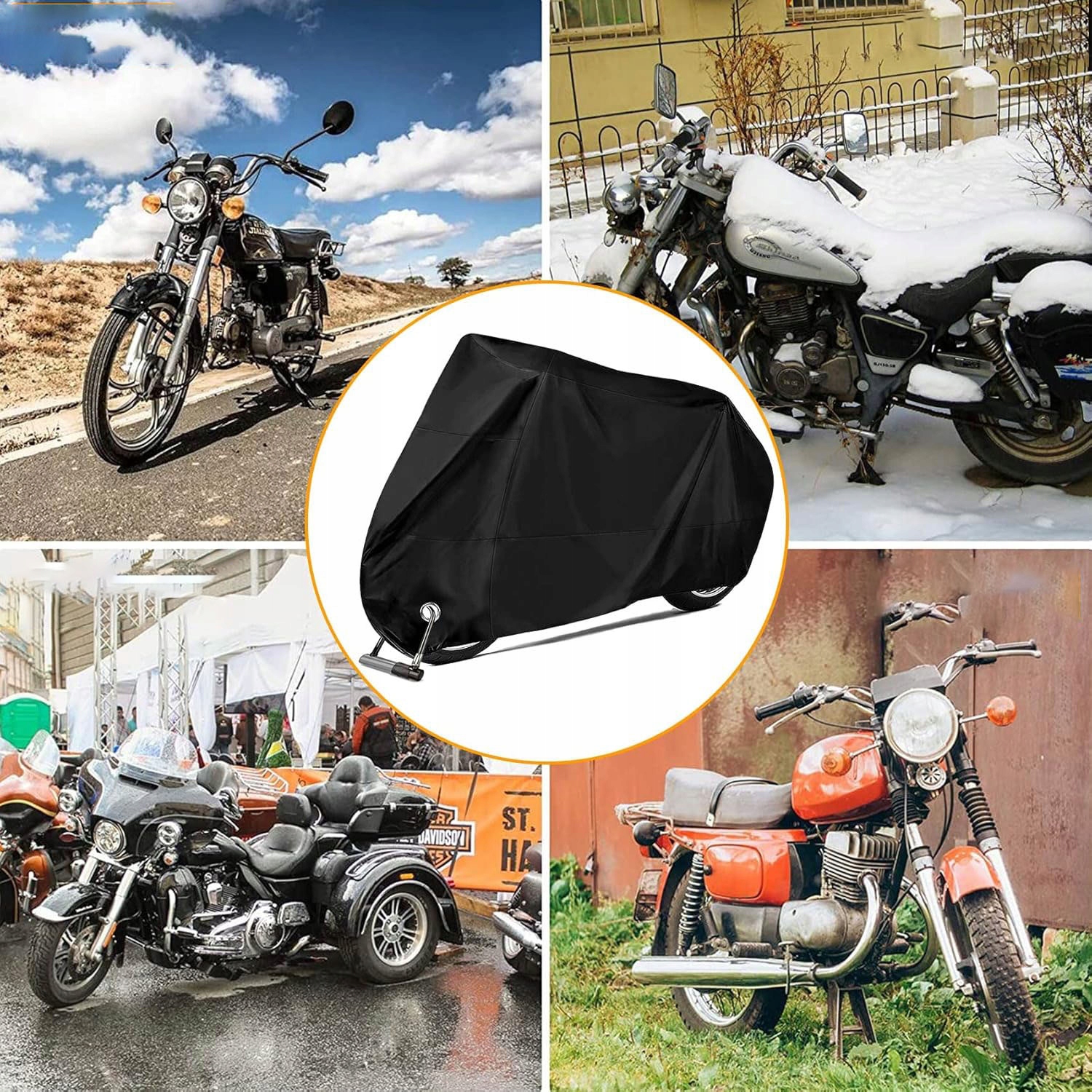 🔒🔒🔒 Строительство с замок отверстий - , покрывающее брезент, скутер, передний нижний конец ZJD, два кольца, через которые можно залить замок на мотоцикле. Благодаря этому ваш мотоцикл подключен к брезентам и оптимально защищен.