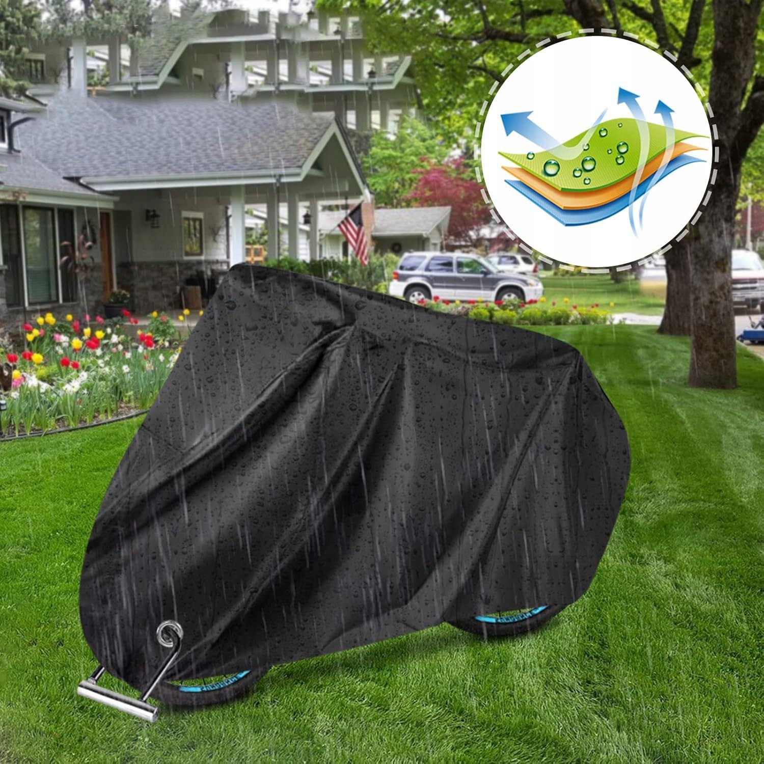 💎💎💎 Высококачественный материал - Мотоцикл изготовлен из прочной полиэфирной ткани 190T и хорошо защищает мотоцикл от ветра, дождя, снега, ультрафиолетового излучения, пыли, грязи, плохой погоды и возможных царапин.