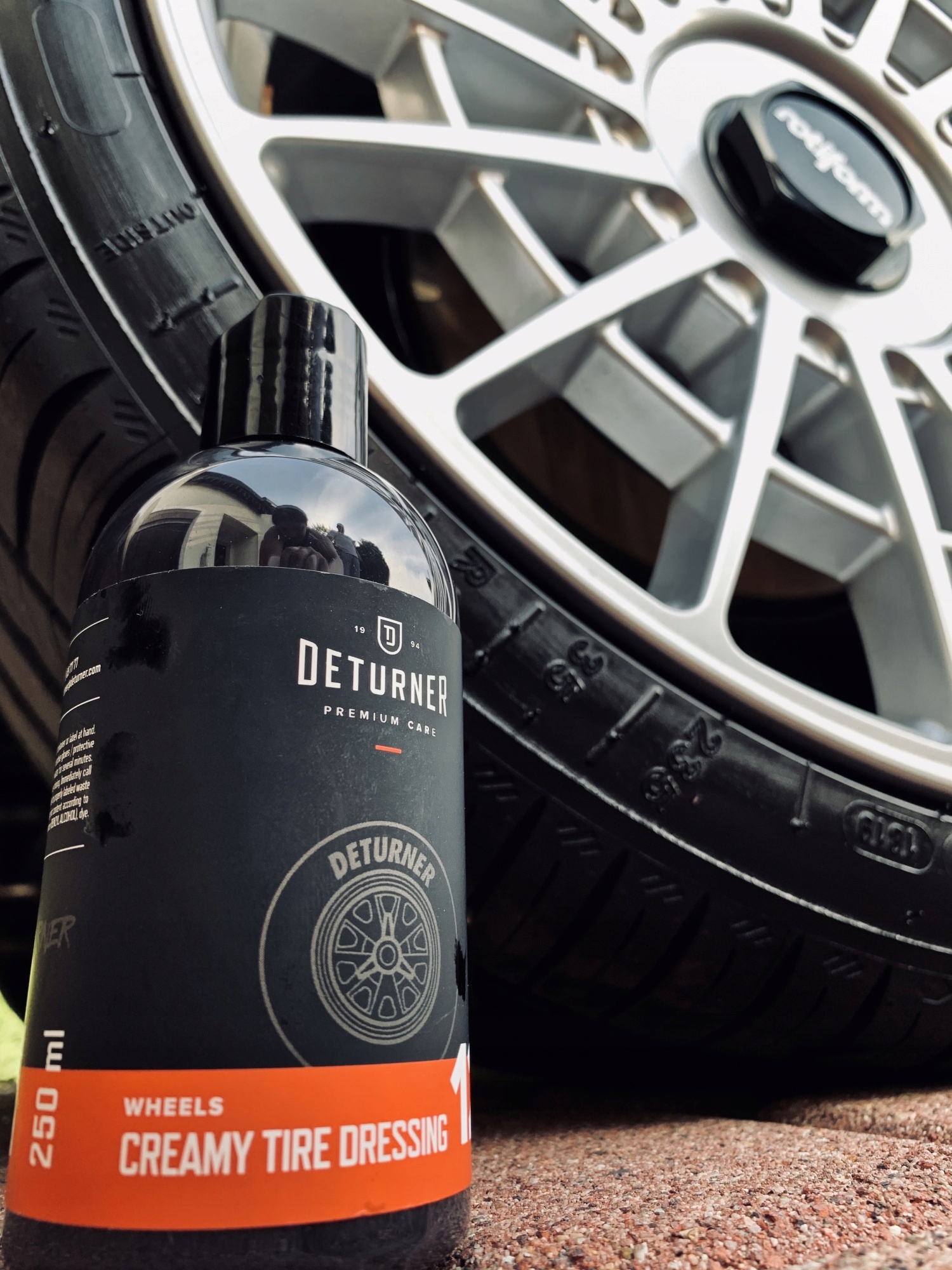 Deturner Creamy Tire Dressing – продукт, предназначенный для пропитки и защиты шин, резиновых элементов и наружных пластиков. Формула продукта разработана на основе воды и кварца (SiO2). Препарат не содержит опасных растворителей.