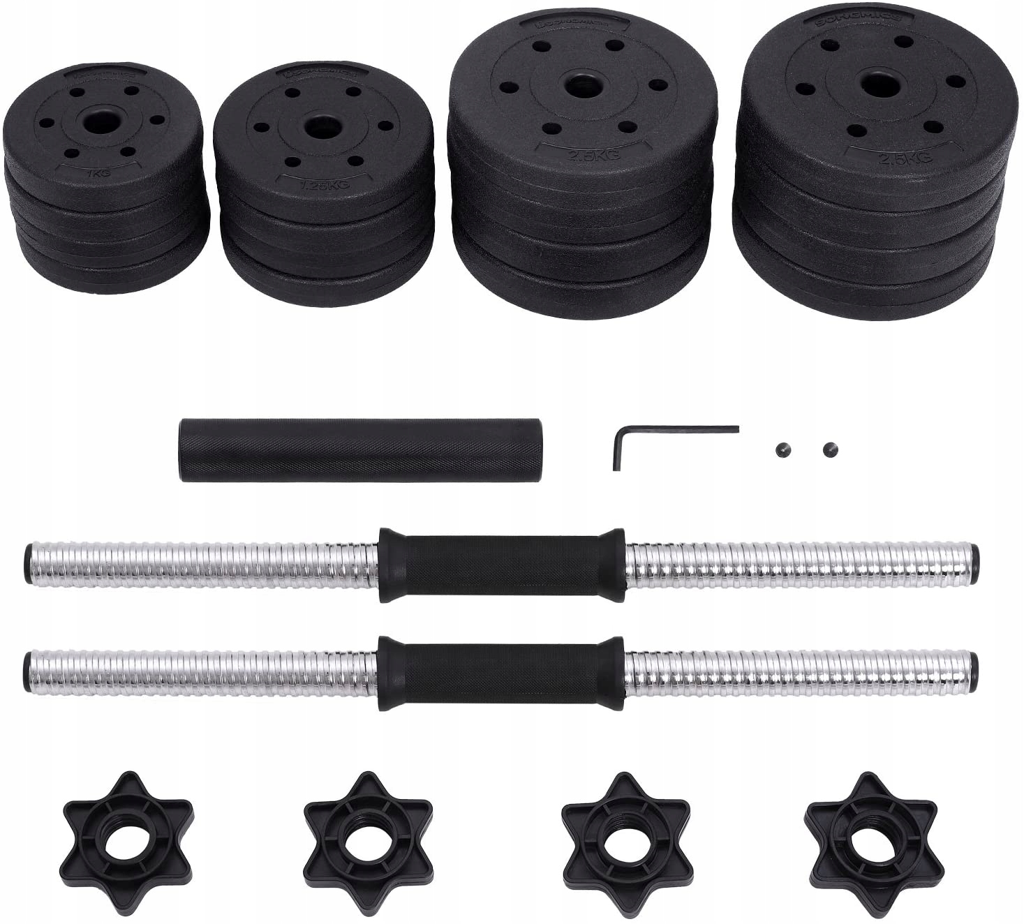 Этот набор гантелей содержит 16 пластин (8 х 2,5 кг, 4 х 1,25 кг и 4 х 1 кг), поэтому вы можете регулировать вес гантелей в зависимости от ваших потребностей