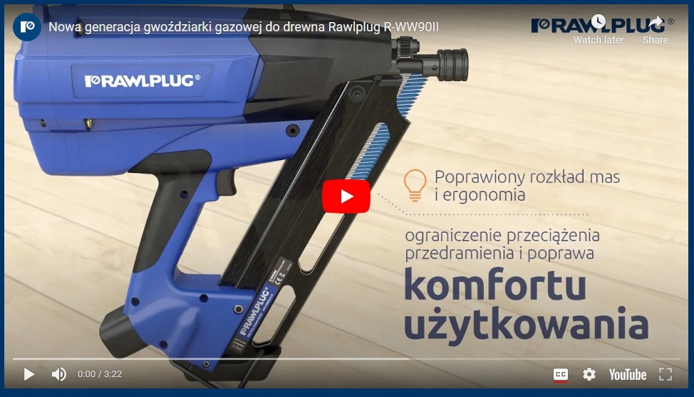 ⏩ Газовый гвоздезабиватель для R-WW90II — отличная беспроводная альтернатива для применения в деревянных конструкциях — не требуются силовые кабели или шланги для сжатого воздуха.
