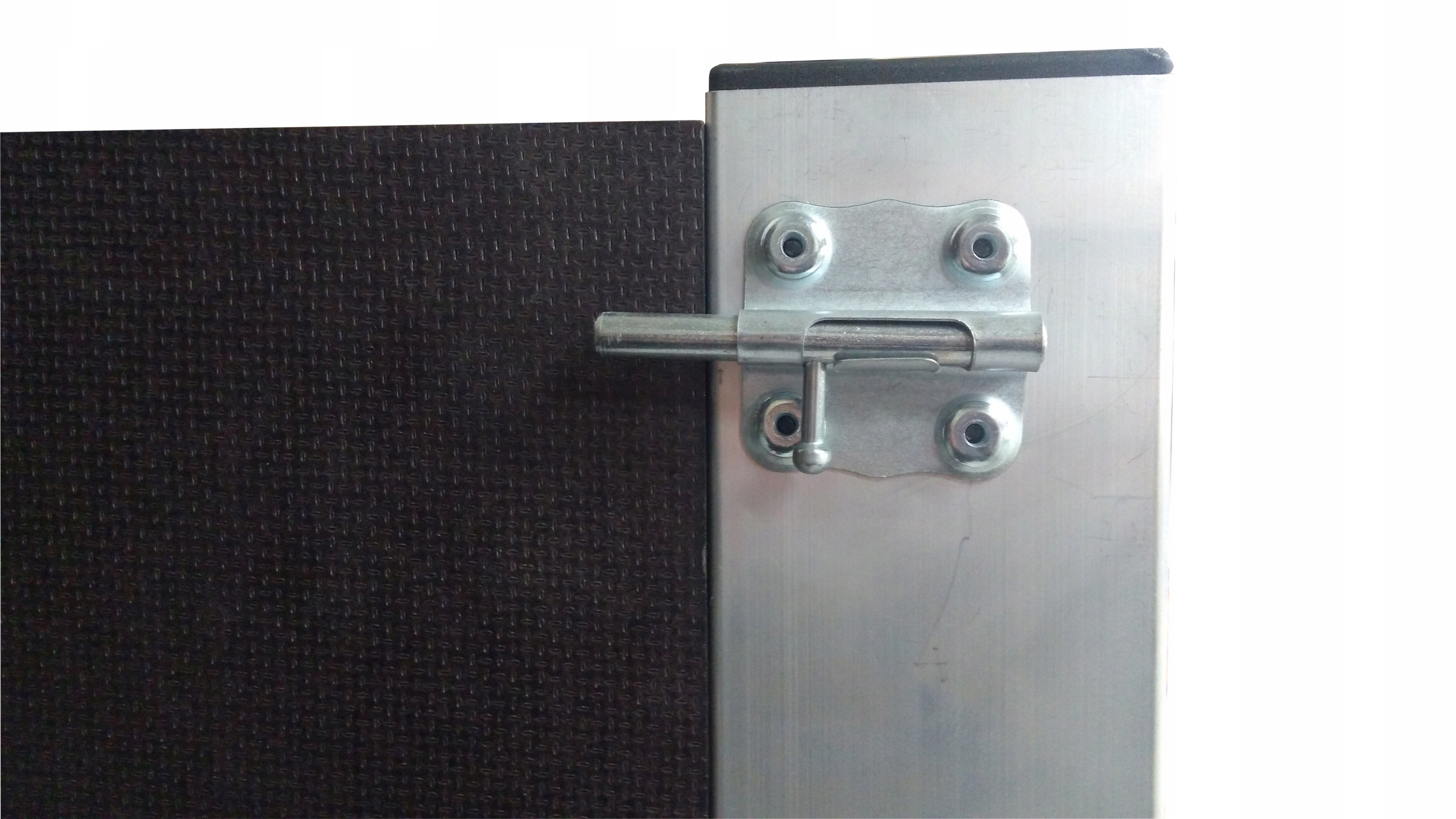 Защелка защищает боковые крышки от неконтролируемого открывания, благодаря чему тележка полностью фиксируется с 3-х сторон во время работы (2 стороны + задняя часть тележки). Каждая крышка крепится двумя болтами.