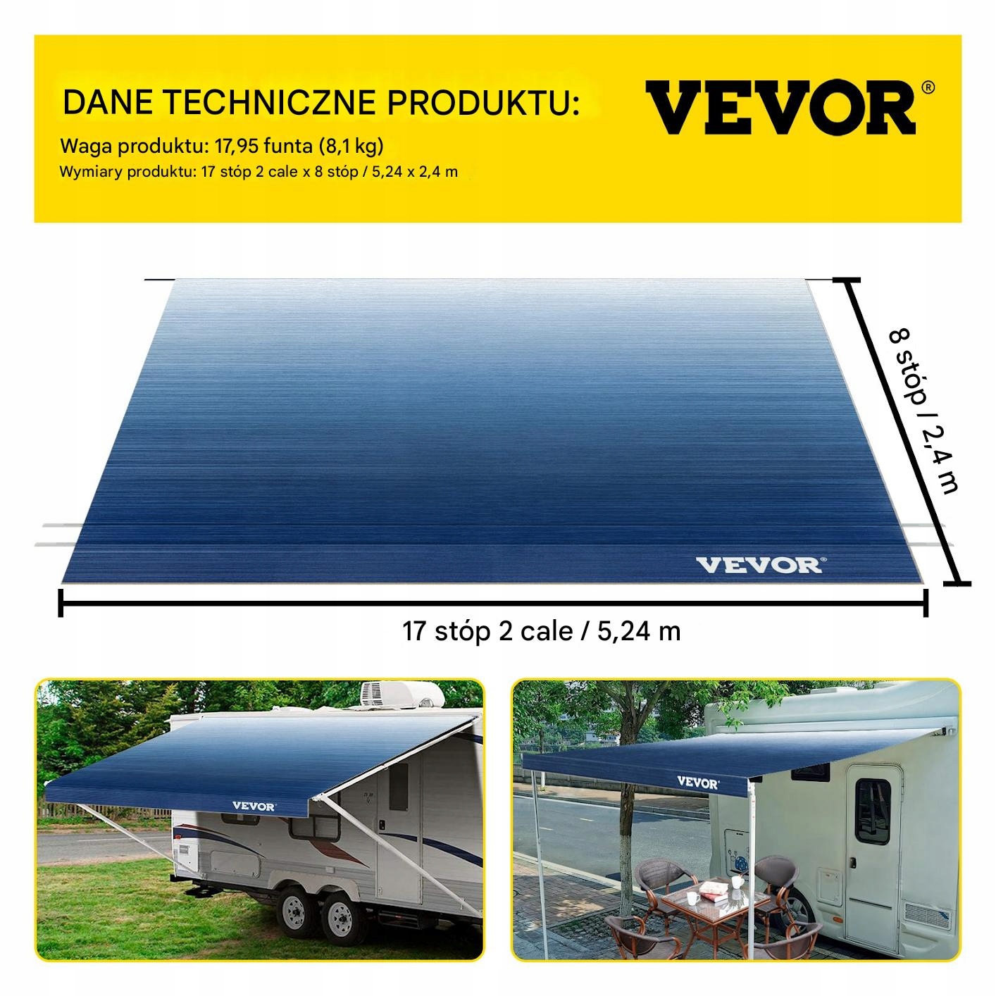 ПРИМЕЧАНИЕ: Это не полный тент! Предложение включает в себя только кровельный материал с размерами 5,24 х 2,4 м без системы распространения. Идеально в качестве замены для существующего дизайна навеса в туристом. Сделанный из винила, обеспечивает защиту от ультрафиолета и дождя, добавляя комфорт во время лагеря.