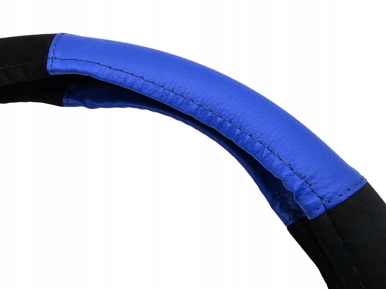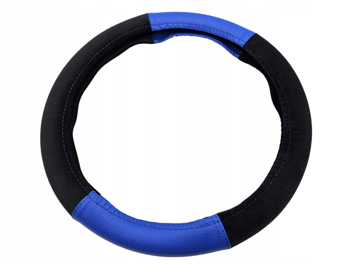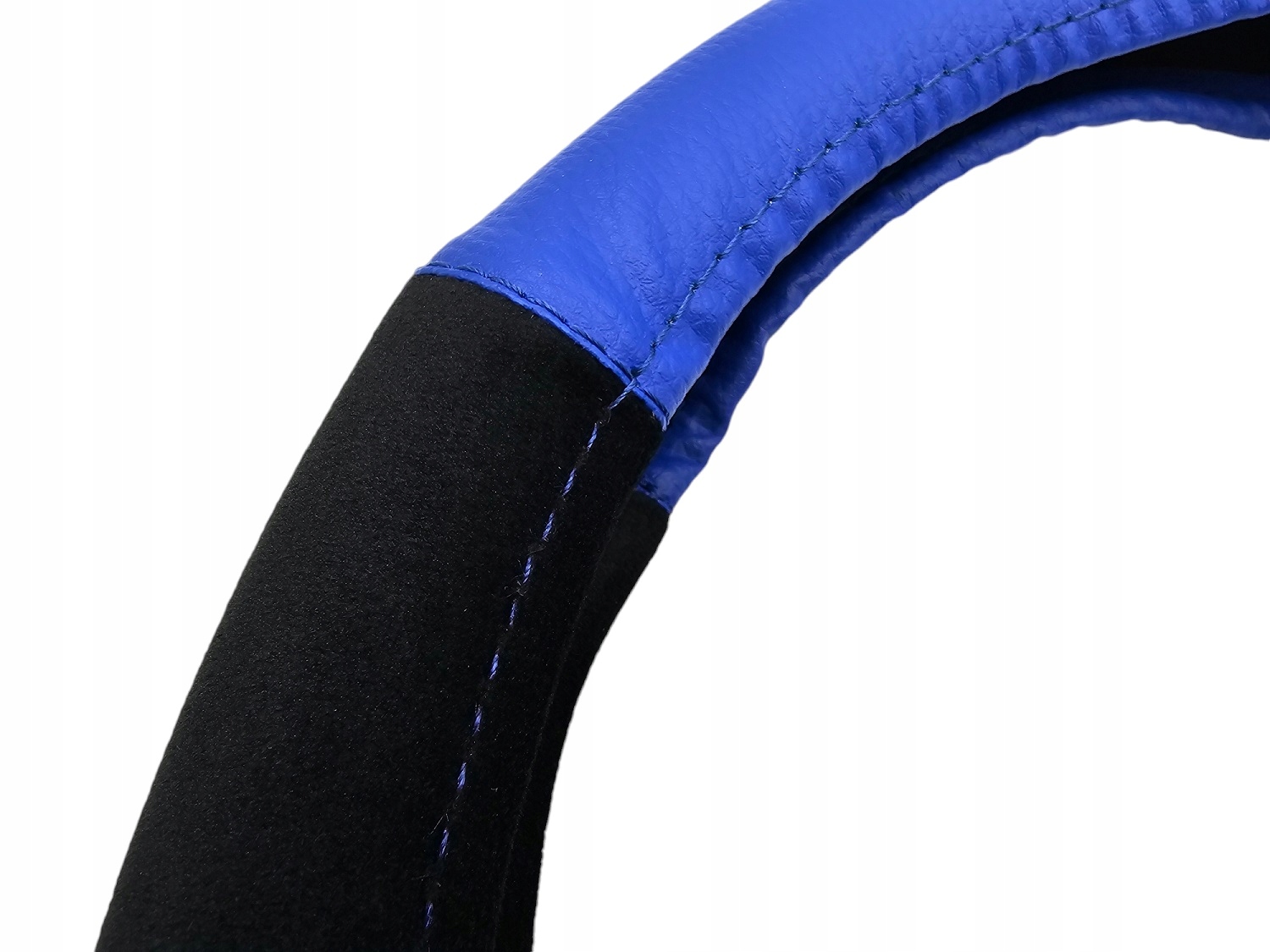 Pokrowiec na kierownice Nakładka 37-39 CZARNY WELUR + NIEBIESKA EKO SKÓRA
