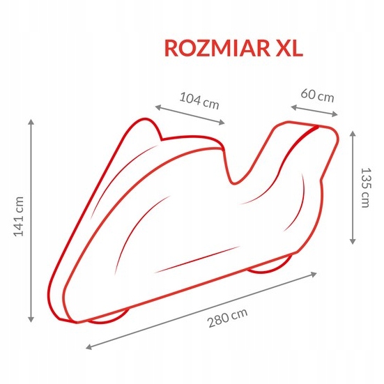 Размер XL - длина: 280 см, высота: 141 см