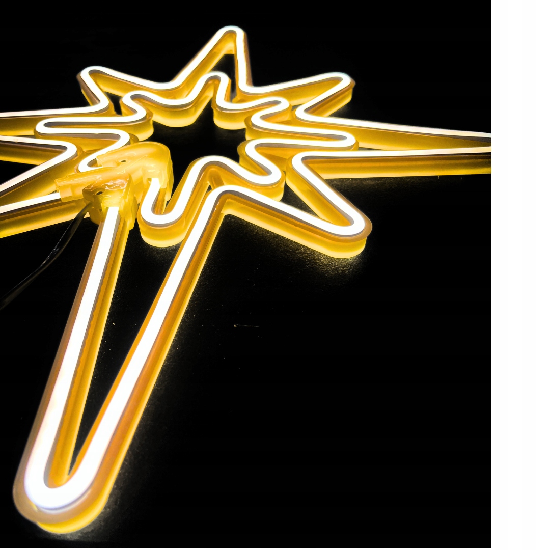 Осветите свой интерьер настоящим рождественским волшебством! Эта декоративная Неоновая светодиодная звезда диаметром 51 см — это сочетание элегантности, долговечности и современных технологий. В отличие от обычных светодиодных ламп с точечным светом, Светодиодные неоновые светильники с полной, равномерной линией создают мягкое и ровное свечение, похожее на классический неон – но без высокого энергопотребления.