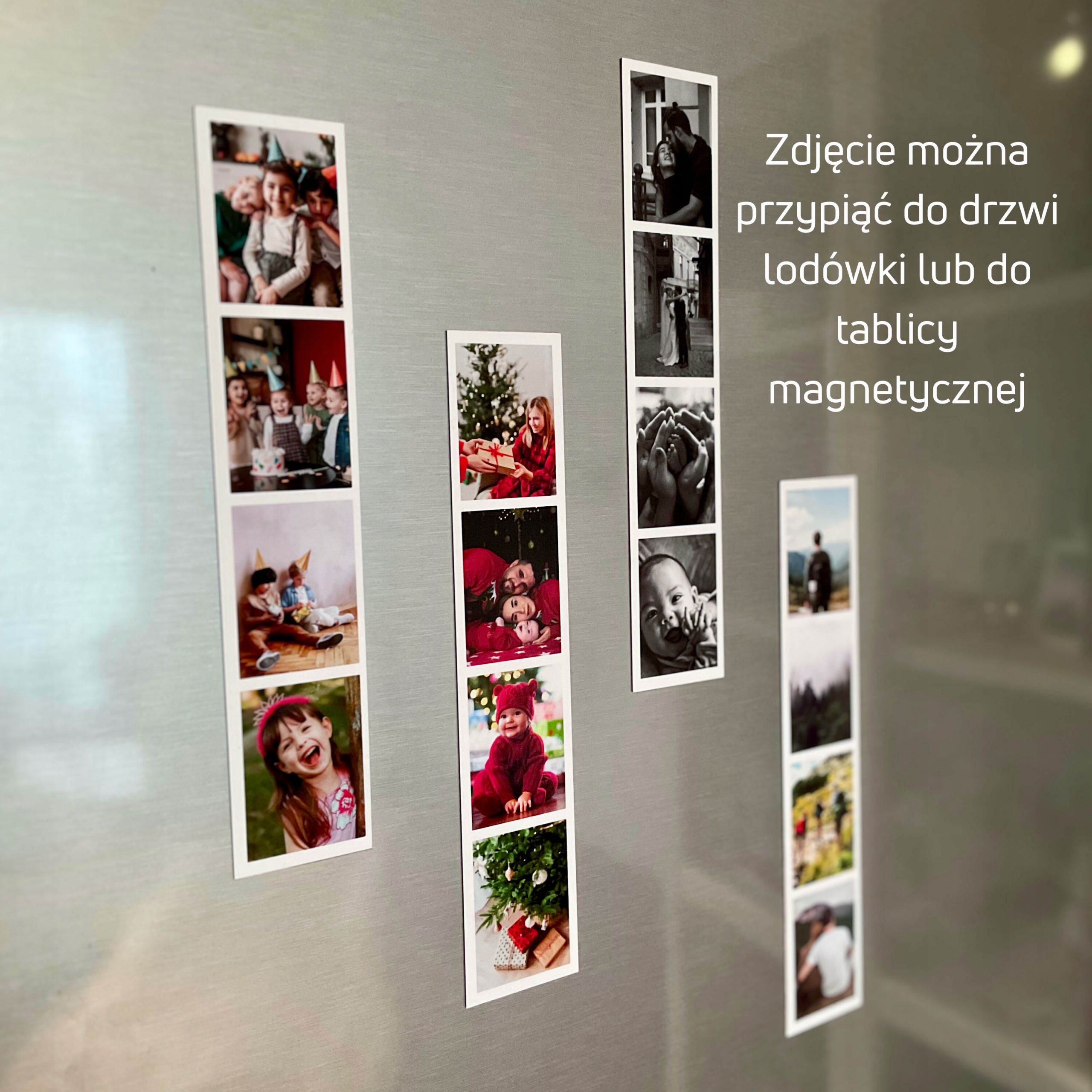 Запечатлейте самые красивые моменты в оригинальном стиле! Мы предлагаем магнитные сувениры в формате характерной полоски из четырех фотографий, вдохновленной классическим видом фотографий Polaroid.