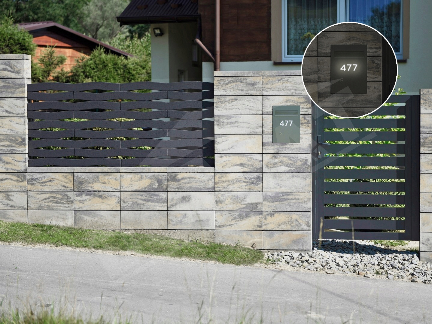 Для дополнительного визуального эффекта номер свойства освещается специальным светодиодным модулем. Этот модуль содержит 3 светодиода высокого качества, является водонепроницаемым (IP68) и имеет мощность 0,72 Вт/12 В постоянного тока. Нумерация разрезана шрифтом Tahoma с высотой 55 мм (максимум 5 символов), а сокращение нумерации может составлять максимум 210 мм. Стоит отметить, что система требует отдельного источника питания 12 В/1А (источник питания не включен).