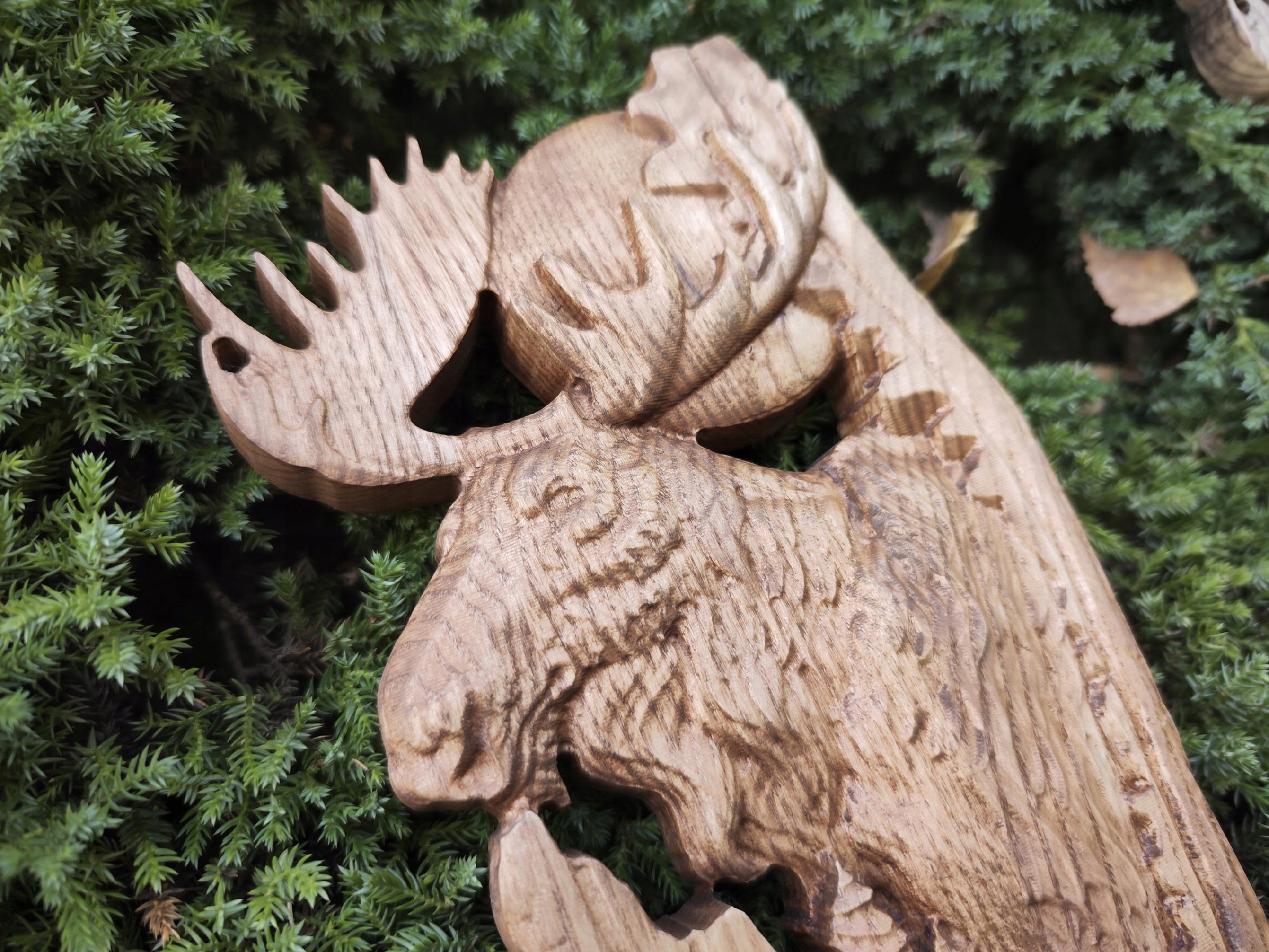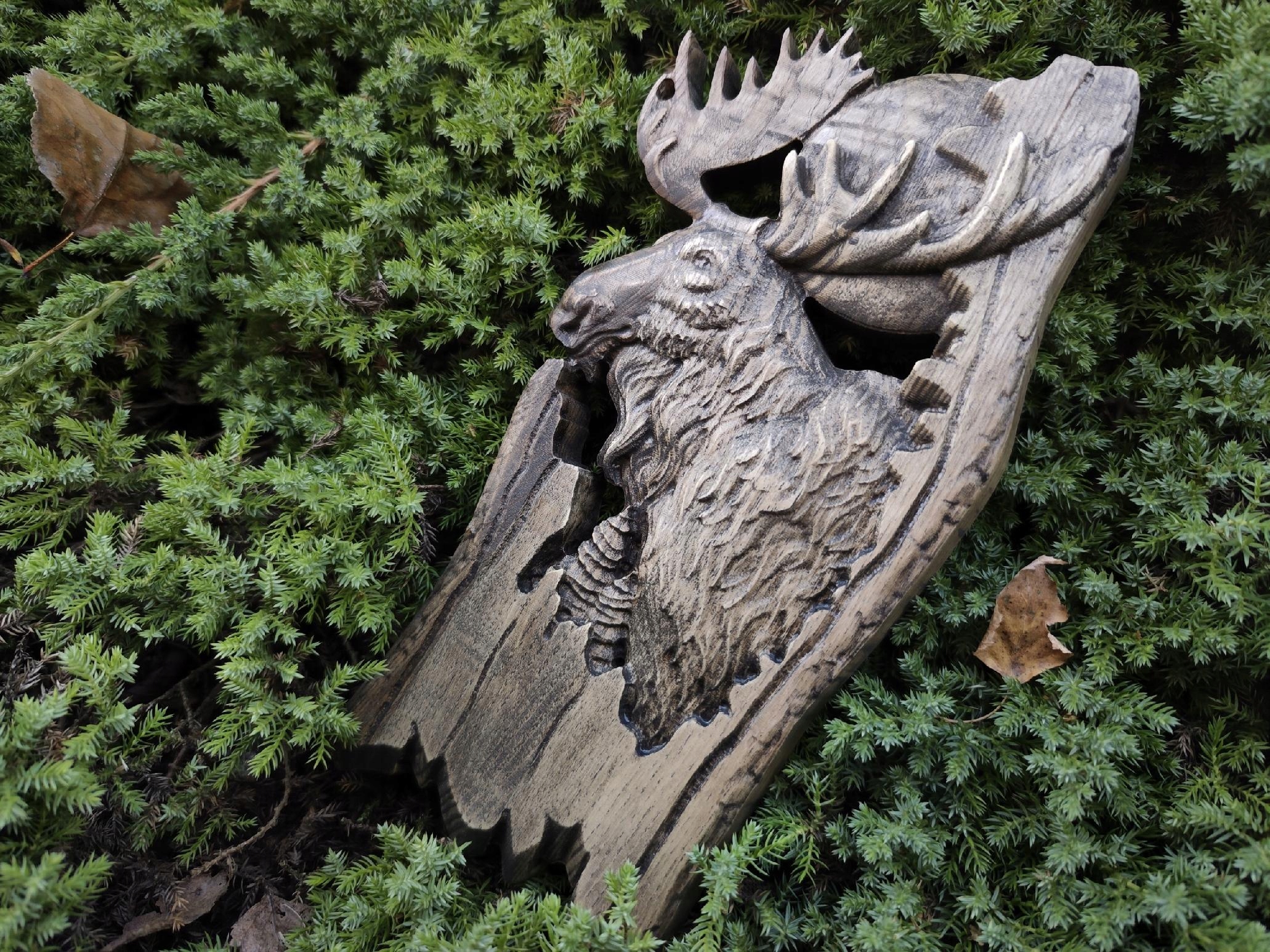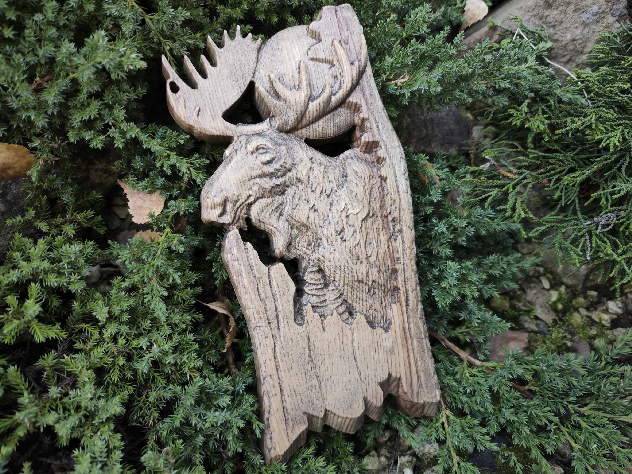 Облегчение деревянного лося на фоне лесного подарка для охотника 30 см.