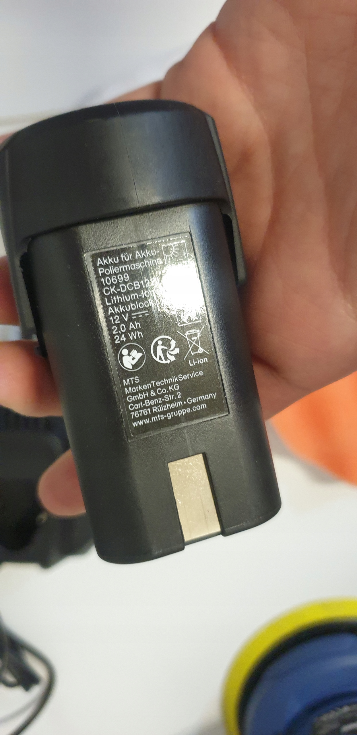 - В комплект поставки аккумуляторной полировальной машины входит 1 полировальная губка с застежкой-липучкой, 1 хлопчатобумажная полировальная подушечка и 1 полировальная подушечка из микрофибры с резиновой ручкой.