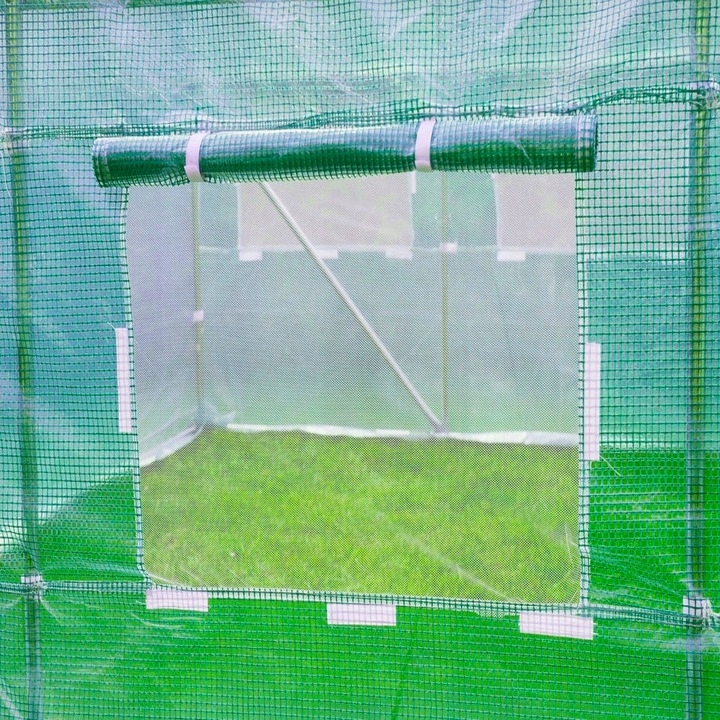 ✔️Распашные двери и рулонные окна: теплица с очень хорошей вентиляцией благодаря 6 сетчатым окнам с крышкой ROLL-UP. по три с каждой стороны для перекрестной вентиляции в самые жаркие дни. Двери на молнии, которые также можно свернуть и зафиксировать в открытом положении, также облегчают доступ внутрь.