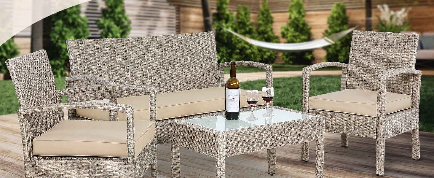 Полиаттан -садовая мебель 3X подушки 2x кресло столовые столбцы бежевый набор
