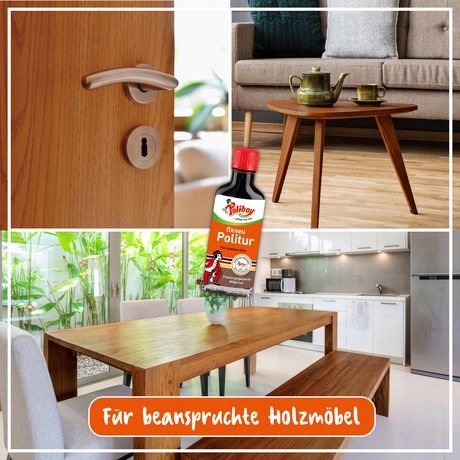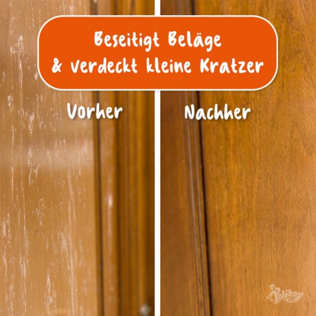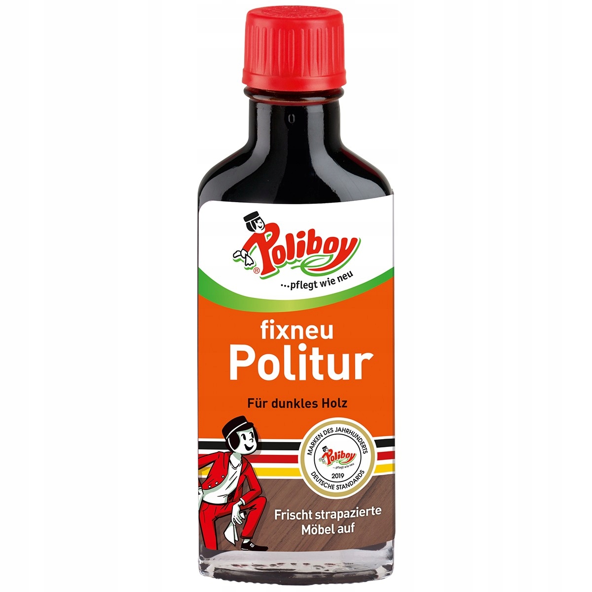 Политор темный для дерева, всей мебели и покрытий под дерево. Подходит также для пропитанных маслом деревянных поверхностей, паркетных полов и освежения шиферных плит.Ухаживает и освежает поврежденную мебель, эффективно очищает и удаляет мелкие царапины. Удаляет седину и отложения, например, от никотина, жира или воска Удаляет пятна, например, от воды и алкоголя. Poliboy politur fixneu также доступен в продаже в виде полироли для светлого дерева, масла для тикового дерева и масла для мебели.