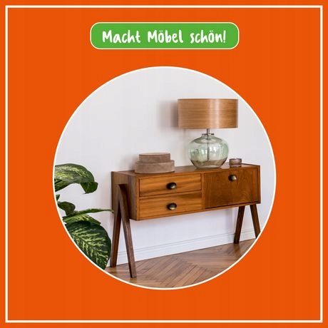 Описание применения: Нанесите немного полироли на чистую безворсовую ткань – не распыляйте непосредственно на поверхность. поверхность мебели. Нанесите тонким и равномерным слоем по направлению волокон и отполируйте насухо. На деликатных или пористых поверхностях сначала протестируйте в незаметном месте. Не содержит силиконового масла и воска.