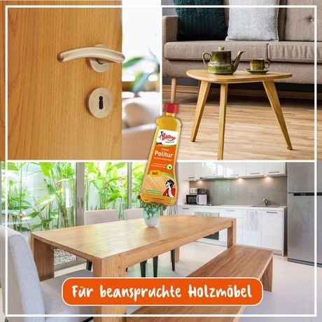Легкий лак для дерева и для всей мебели и деревянных облиганий. Он также подходит для деревянных поверхностей, пропитанных маслом, для паркета и для освежающих сланцевых пластин. Он работает и обновляет поврежденную мебель, эффективно очищает, удаляет незначительные царапины. Удаляет изгибы и отложения, например, от никотина, жира или воска. Он становится пятнами, например, от воды и алкоголя. Poliboy Politur Fixneu также доступен в торговле в качестве политической полиции для темного древесины, масло и мебели тикового масла и мебели