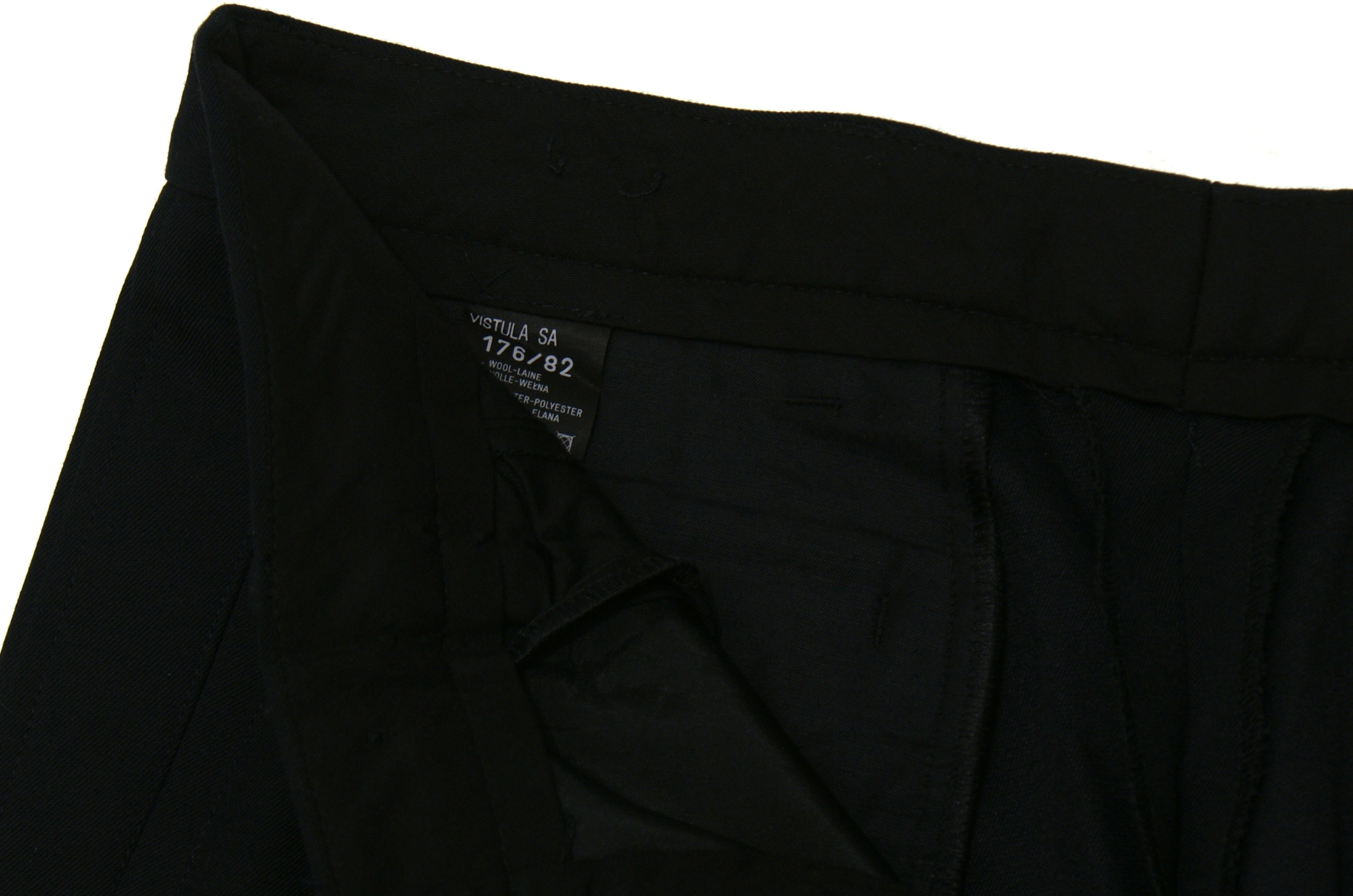 Брюки милицейские 1990-х годов, выкройка как в МО. Состояние хранения, ни разу не носился. Модель из габардина черного цвета. Видны клейма производителя. Брюки производства Висла.