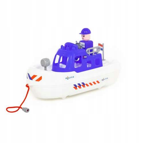 Что-то для маленьких детей, что позволит им подружиться с водой. Как в бассейне или озере, так и в ванне. Лодзинский патруль Полицейский катер из Полесья — лодка для водного полицейского. На его палубе разместились прожектор, руль направления, флаг и каюта. Дополнительно в комплект входит фигурка полицейского, который может стать героем водных приключений. К носу лодки можно привязать верёвку (входит в комплект), что позволит её тянуть.