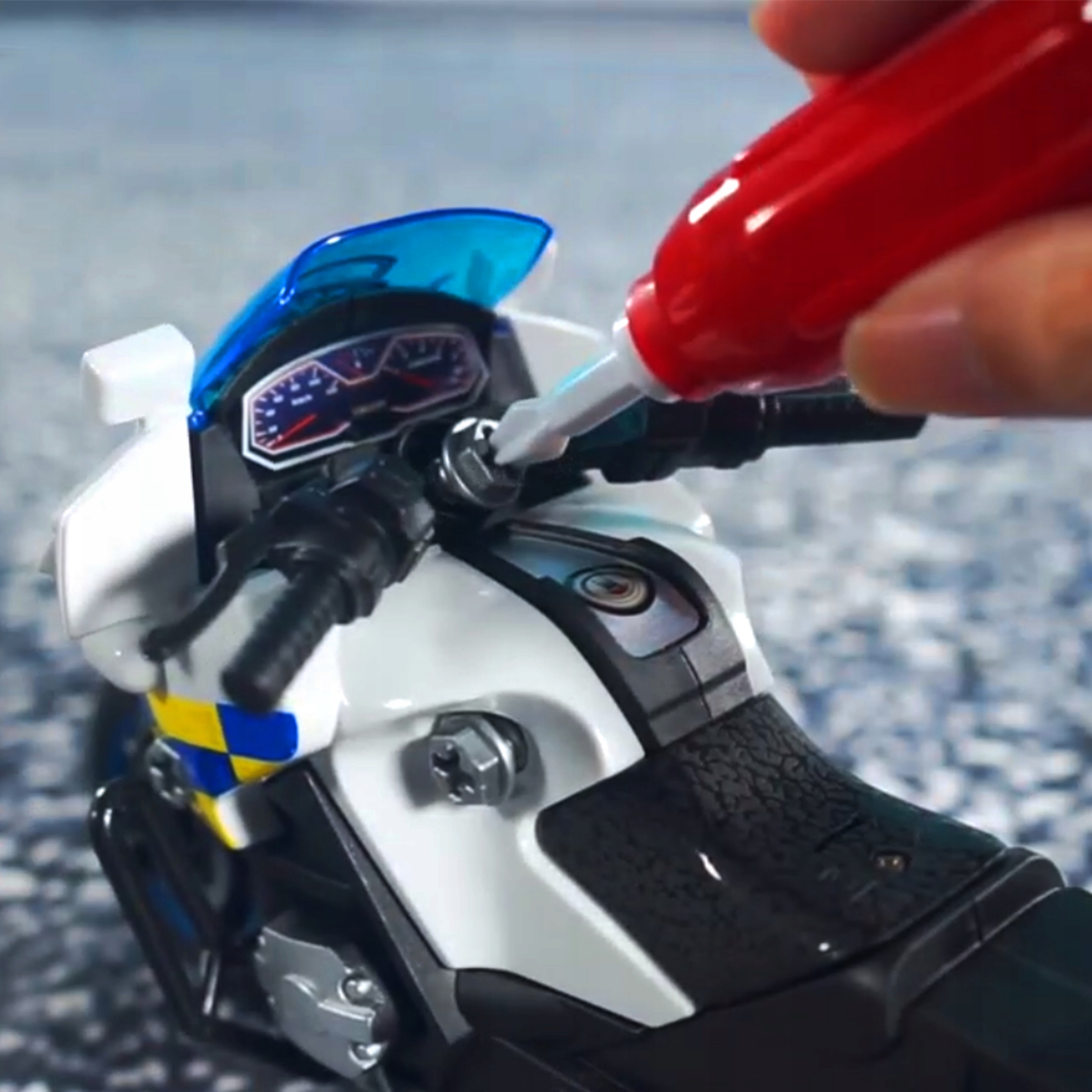 Полицейский мотоцикл — это сенсационный автомобиль, который издает звуки и имеет световые эффекты, а также его можно разбирать и поворачивать.