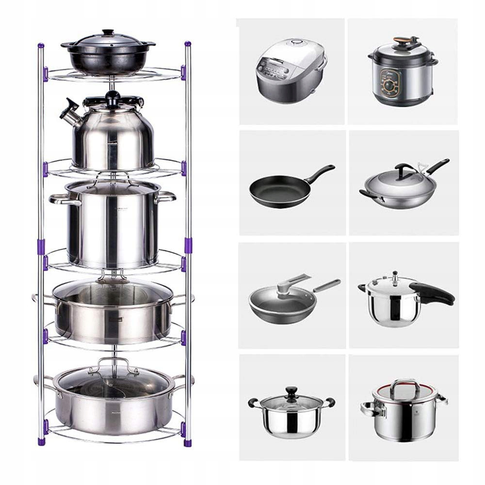 【Компактная подставка для кастрюль】 — размеры этой пятиъярусной подставки для кастрюль составляют 39,92 x 13,78 дюйма. Его вертикальный дизайн максимально увеличивает площадь пола, обеспечивая достаточно места для хранения кухонных принадлежностей и делая его идеальным помощником в создании красивой и аккуратной кухни.