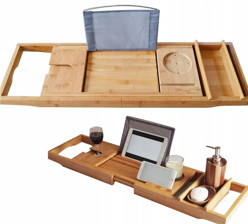 Полку можно использовать для расслабляющей ванны с бокалом хорошего вина и тарелкой закусок. Благодаря нашему продукту они будут у вас под рукой. Кроме того, наша полка позволит вам читать любимую книгу или смотреть фильм в теплой ванне, полной пены, расслабляющей тело и разум.