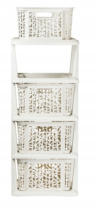 Изделие состоит из 4-х контейнеров, выполняющих функцию ящиков. Они выполнены из пластика, по виду напоминают ажурные корзинки. > b> Благодаря этому они выглядят очень эстетично.