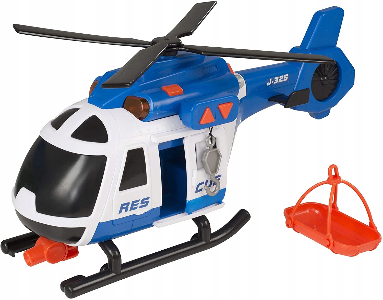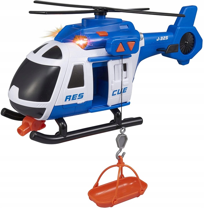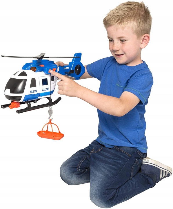 Большой вертолет с характеристиками, делающими его похожим на полноразмерный автомобиль. Игрушка имеет раздвижную дверь, открывающуюся аппарель и кнопки, отвечающие за опускание и подъем спасательной шлюпки, поворот гребных винтов, а также включение > реалистичного звука спасательной сирены и мигалок.