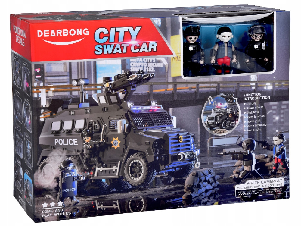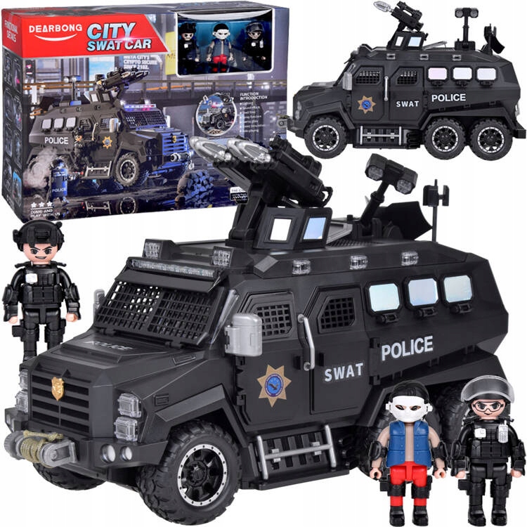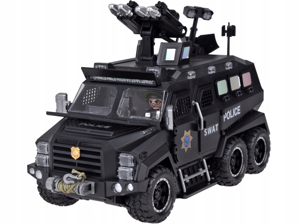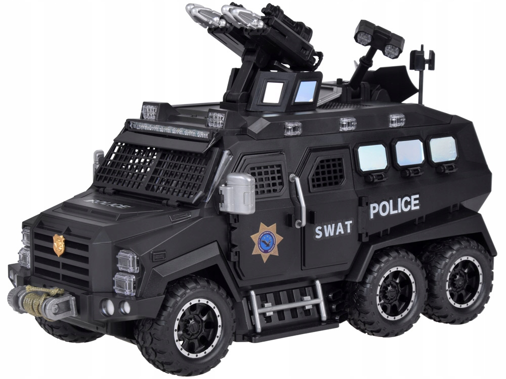 - Станьте специальным агентом и борьбу с преступностью с удивительным спецназом специального подразделения! Эта удивительная модель грузовика приведет вас прямо к борьбе со злом. Он полон реалистичных деталей, которые будут восхищать как маленькие, так и большие сердца. Удивительно оформленная полицейская машина имеет открывающуюся дверь, крыша из центра командного центра и подвижный радар, а также светящаяся фаша на крыше, которая привлекает внимание. Но это еще не все - во время движения в задней части автомобиля, дым сбегает, что добавляет удивительную атмосферу! Представьте, что вы являетесь членом элитного спецназа, и вы должны получить опасные преступники. Этот впечатляющий автомобиль устанавливает новые правила игры, когда дело доходит до внешнего вида и производительности. Оснащен резиновыми шинами, которые обеспечат адгезию на любую поверхность, и привод на толкатель, чтобы вы могли быстро пойти, чтобы помочь. Набор включает в себя все, что вам нужно, чтобы начать приключение: полицейская машина, три фигурки агента (около 8 см), боеприпасы, наклейки и инструкции. Автомобиль изготовлен из высококачественного пластика, благодаря которому он будет подавать вам долгое время. Размеры транспортного средства: длиной 34 см, ширина 14 см и высота 20 см, а колеса диаметром около 6 см. Этот замечательный подарок упакован в привлекательную, красочную коробку, основанную под елкой. Если вы ищете игрушку, которая будет стимулировать воображение вашего ребенка и обеспечить часы, полные приключений, автомобиль SWAT Special Unit - отличный выбор!