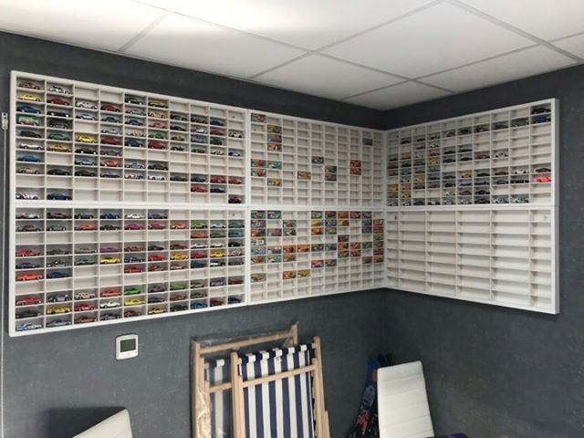Очень прочный - с Фанера 15 мм, сетка для машинок 4 мм. Кроме того, задняя часть укрепляет все и предотвращает дополнительное повреждение стены. Горизонтальные и вертикальные перегородки проклеены.