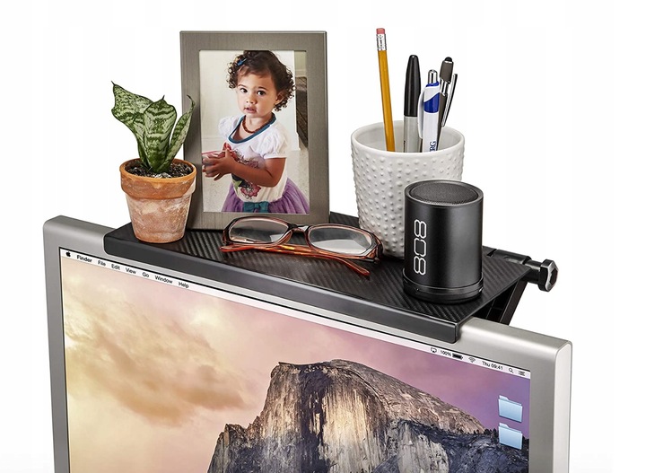Полку можно установить на любой монитор с плоским экраном или телевизор. Благодаря регулируемым опорам для установкине потребуются инструменты. Просто поместите его в верхнюю часть экрана, отрегулируйте опоры и зафиксируйте, затянув ручку.