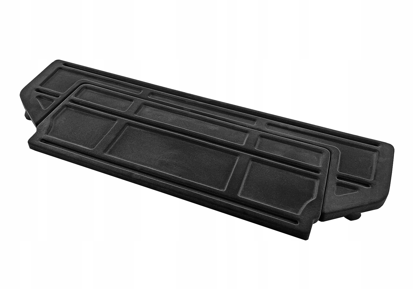 Полка состоит из 2-х элементов. Поместите больший элемент полки на боковые края багажника. Меньший элемент выдвигается и накладывается на край большего элемента полки.