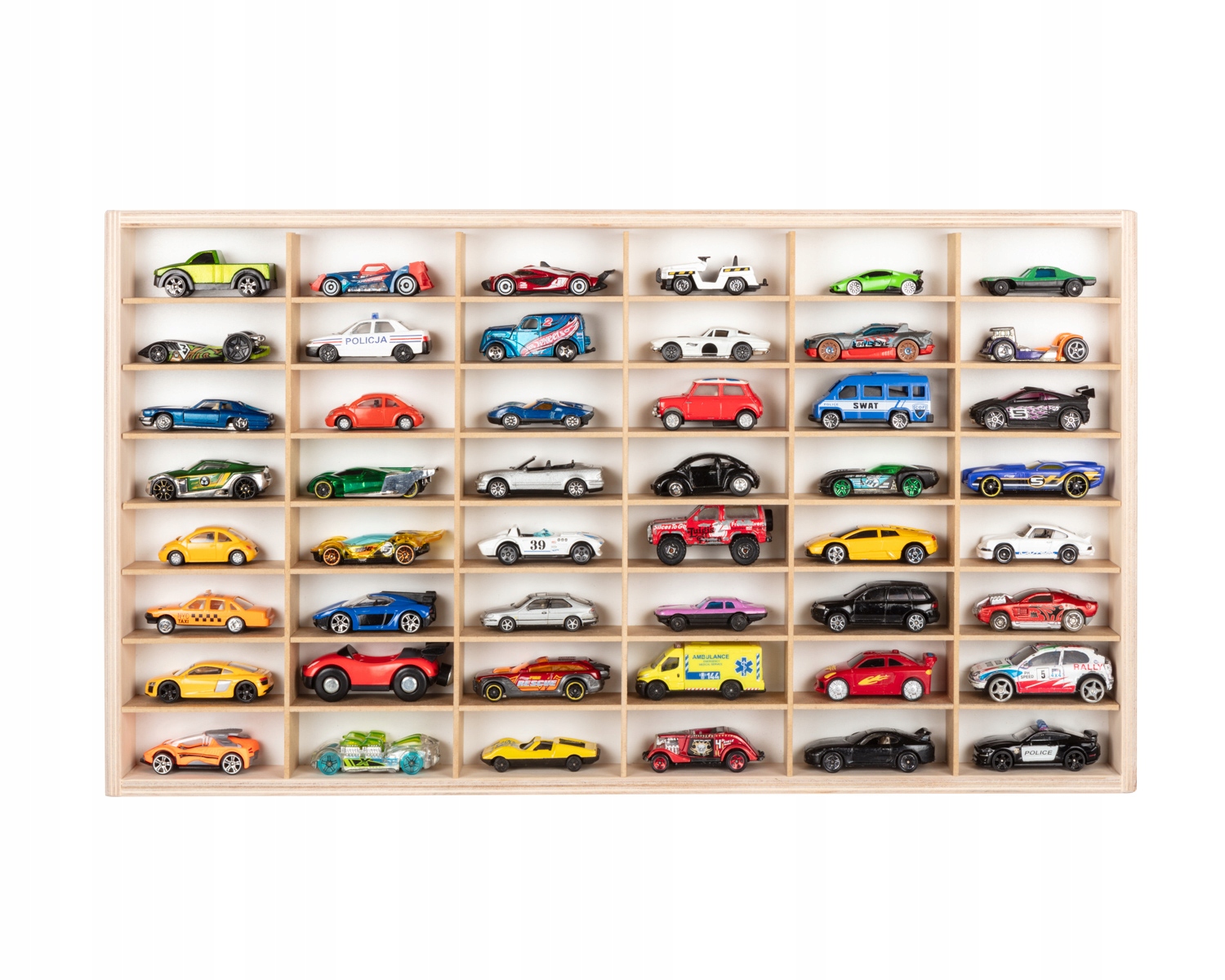 ПОЛИЦЯ ДЛЯ АВТОМОБІЛІВ АВТОМОБІЛІ ПРУЖИНИ HOT WHEELS ОРГАНІЗАТОР 48 ДЕТАЛЕЙ МДФ