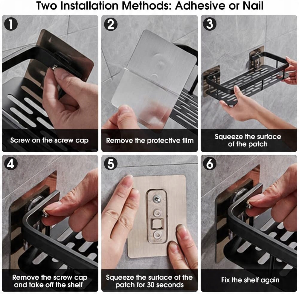 【Применяется ко всем стенам】 Мы предлагаем два метода установки: 1. Для установки используйте прозрачный, не оставляющий пятен клей, подходящий для плитки или стеклянных стен. 2. Для установки используйте гвозди, мы предоставим достаточно деталей для установки, подходящих для неровных или окрашенных стен. Эти два способа монтажа подходят для любых стен, поэтому можете смело покупать их.