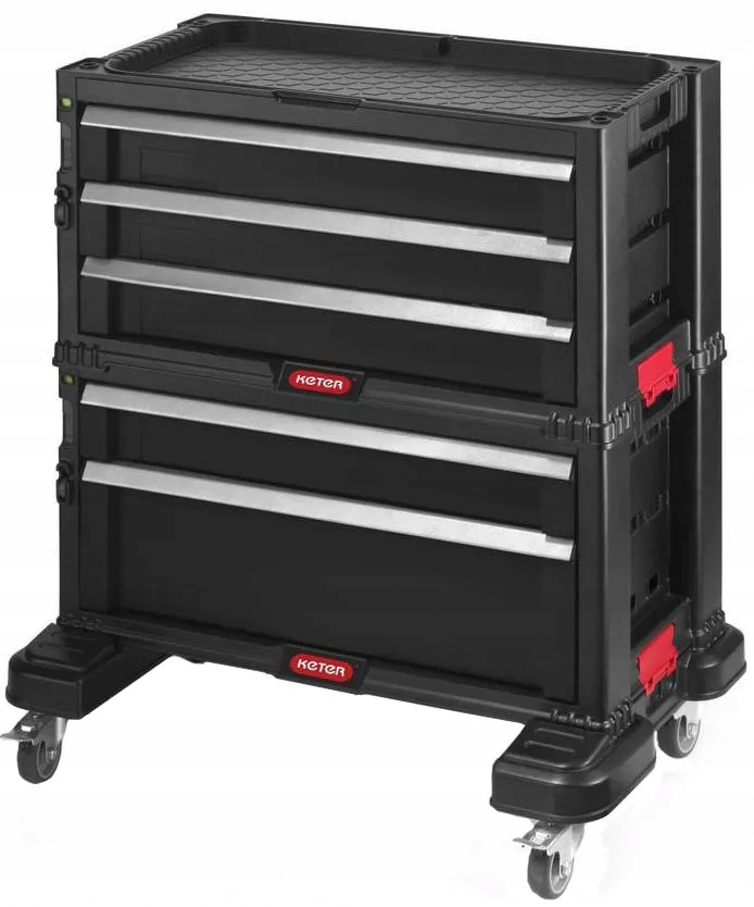 ✅ Универсальная конструкция с 5 ящиками включает глубокий ящик для более крупных и тяжелых инструментов и 4 ящика для мелких предметов и дополнительного оборудования.