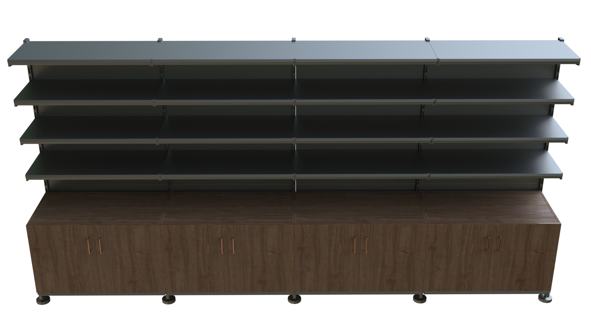 - Полки имеют 4 полки, а гондолы, т. е. двухсторонняя полка, имеют 4 полки + 4 полки.
