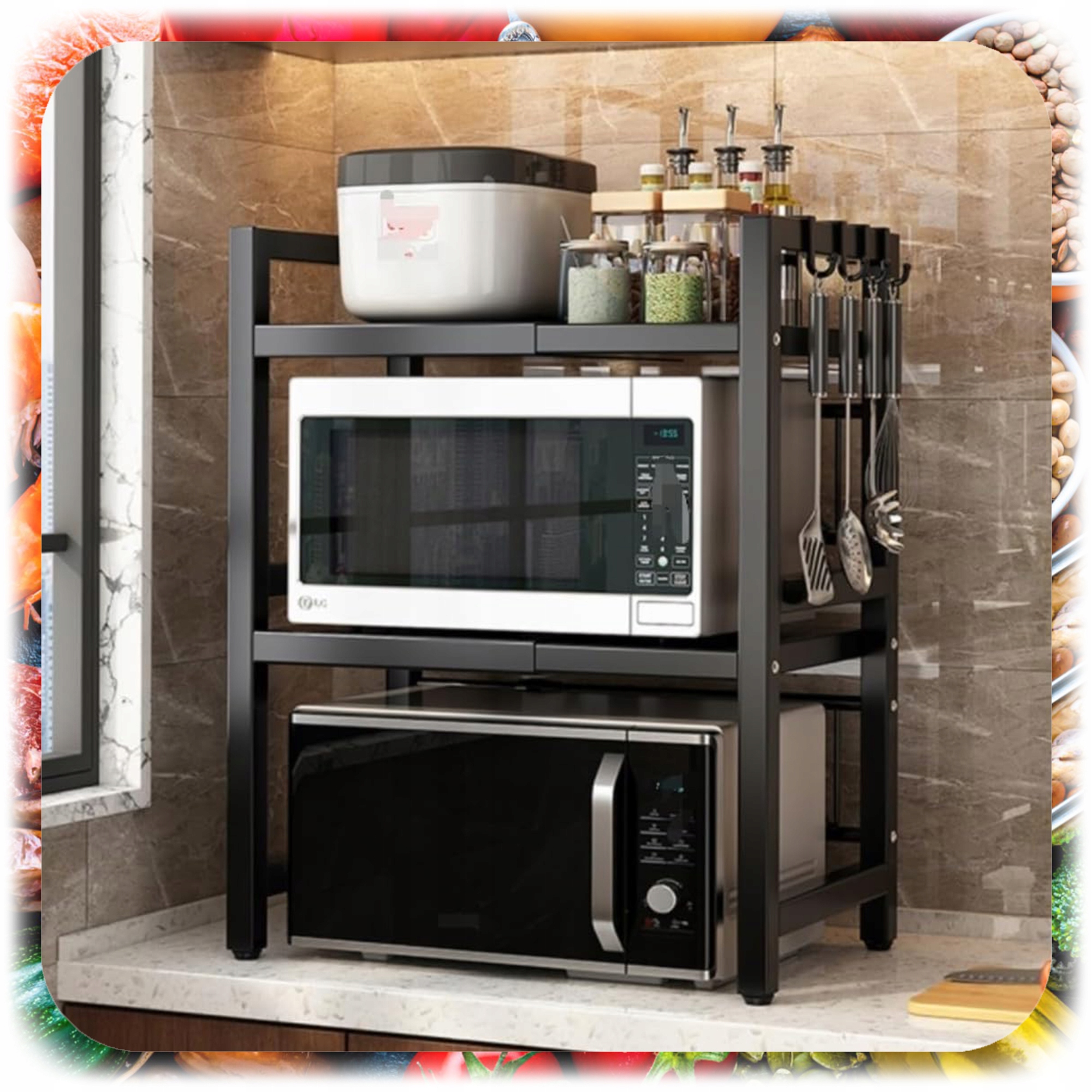 Вы ищете умный способ организовать кухонный стойкий счетчик? Эта 2-уровневая полка для микроволновой печи поможет вам контролировать хаос и восстановить рабочее пространство без необходимости установить дополнительные шкафы. Стабильный, металлический дизайн, регулируемая ширина и современный внешний вид делают его идеально подходящим для каждой кухни - как современной, так и классической.