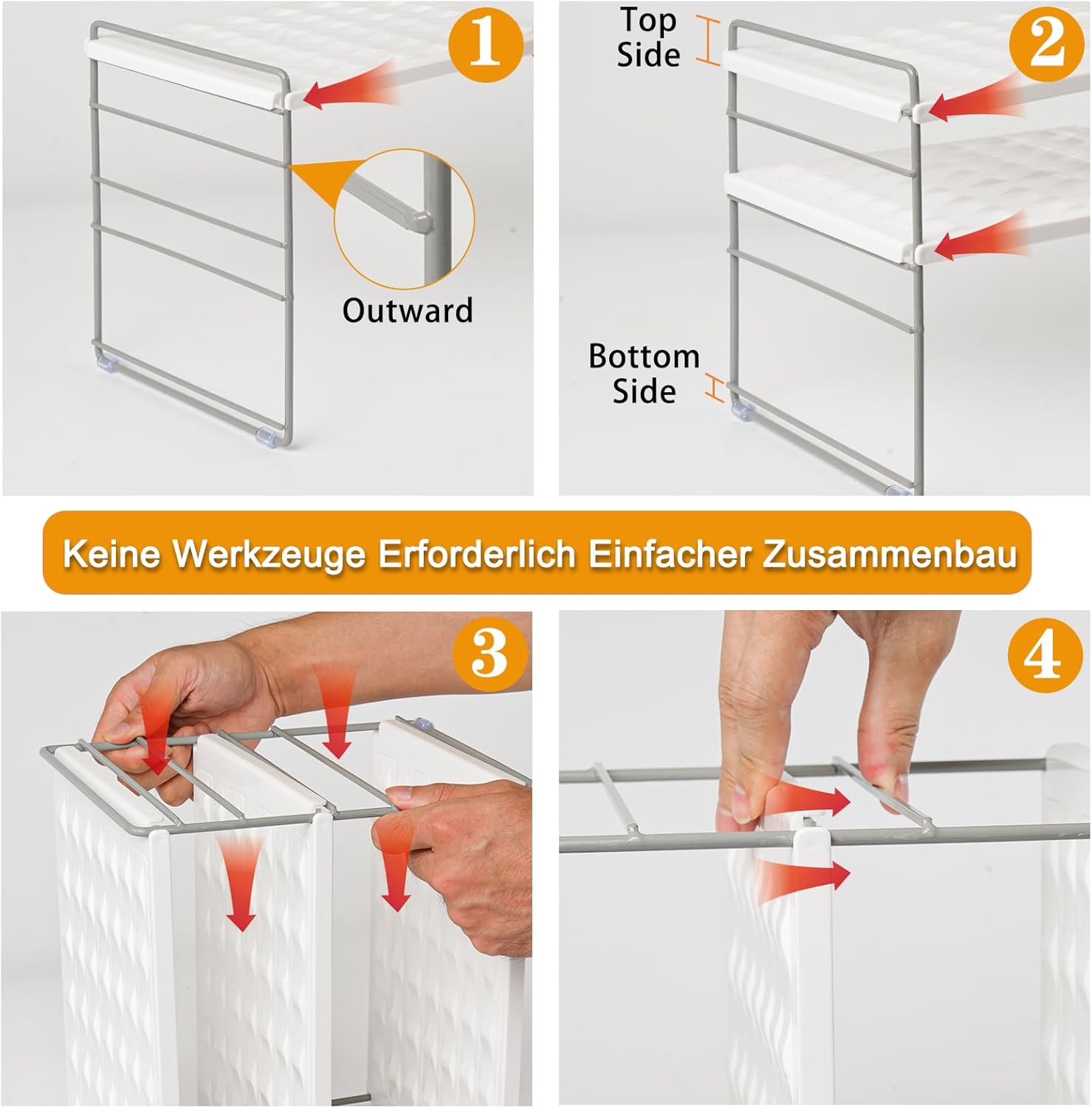 - Регулируемая и расширенная конструкция: бутылочная подставка для шкафа может быть адаптирована к вашим потребностям. Он может быть длиной от 20 до 42 см, высота каждого уровня также может быть адаптирована к желаемой системе. Максимальное использование места в кухонном шкафу и холодильнике.