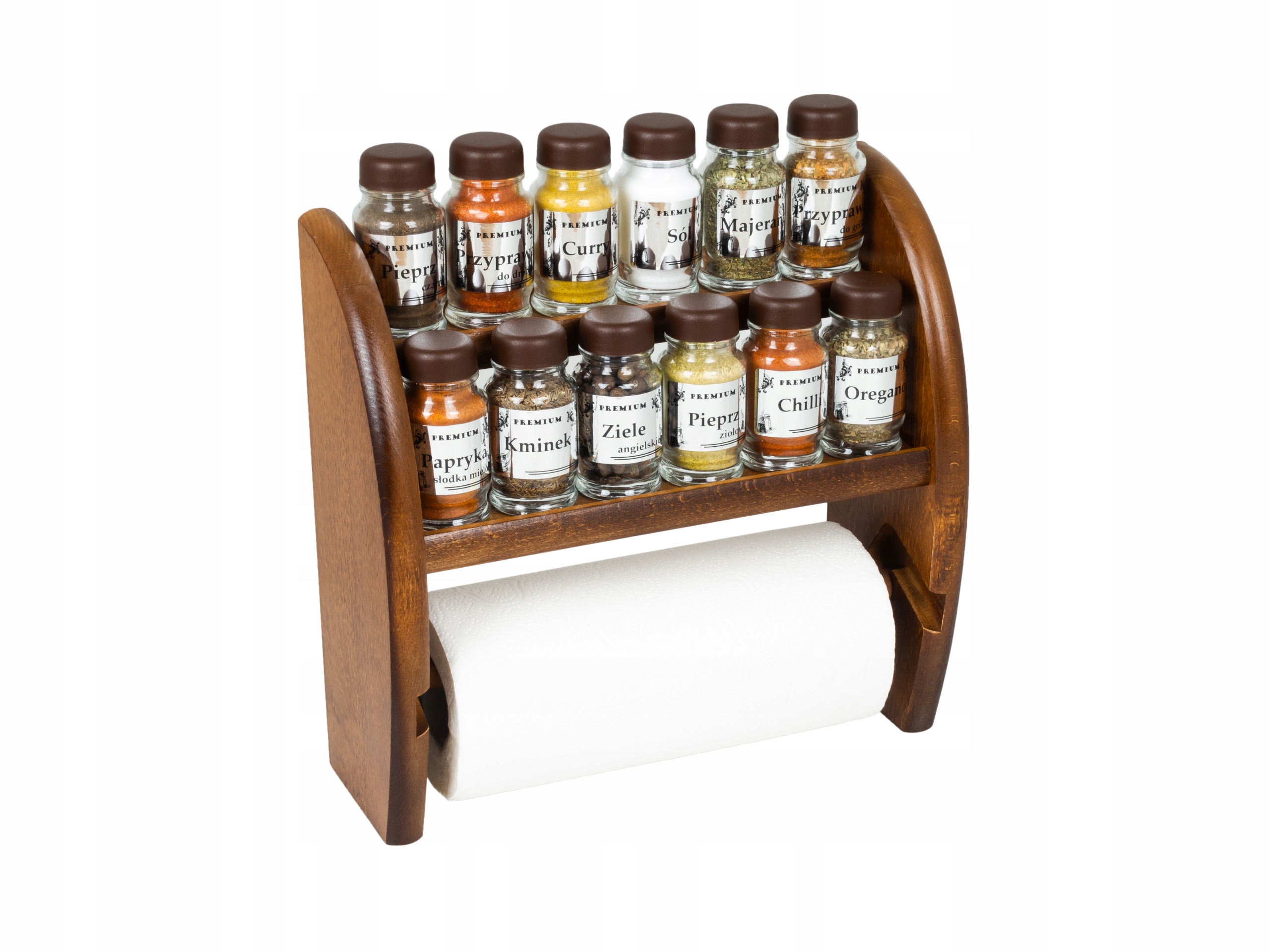 - Полка для специй из натуральной древесины бука избавляет от проблемы неупорядоченного хранения специй, а также мы создали место для не менее полезного предмета – бумажного полотенца.