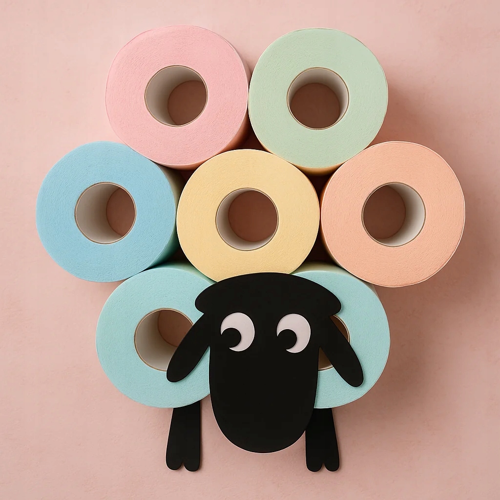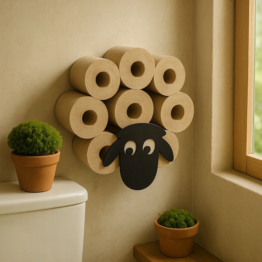 Сделано в классический цвет стилизованный в форме оперативной памяти или овец, это практическое держатель туалетной бумаги, и в то же время эффективное украшение стен.
