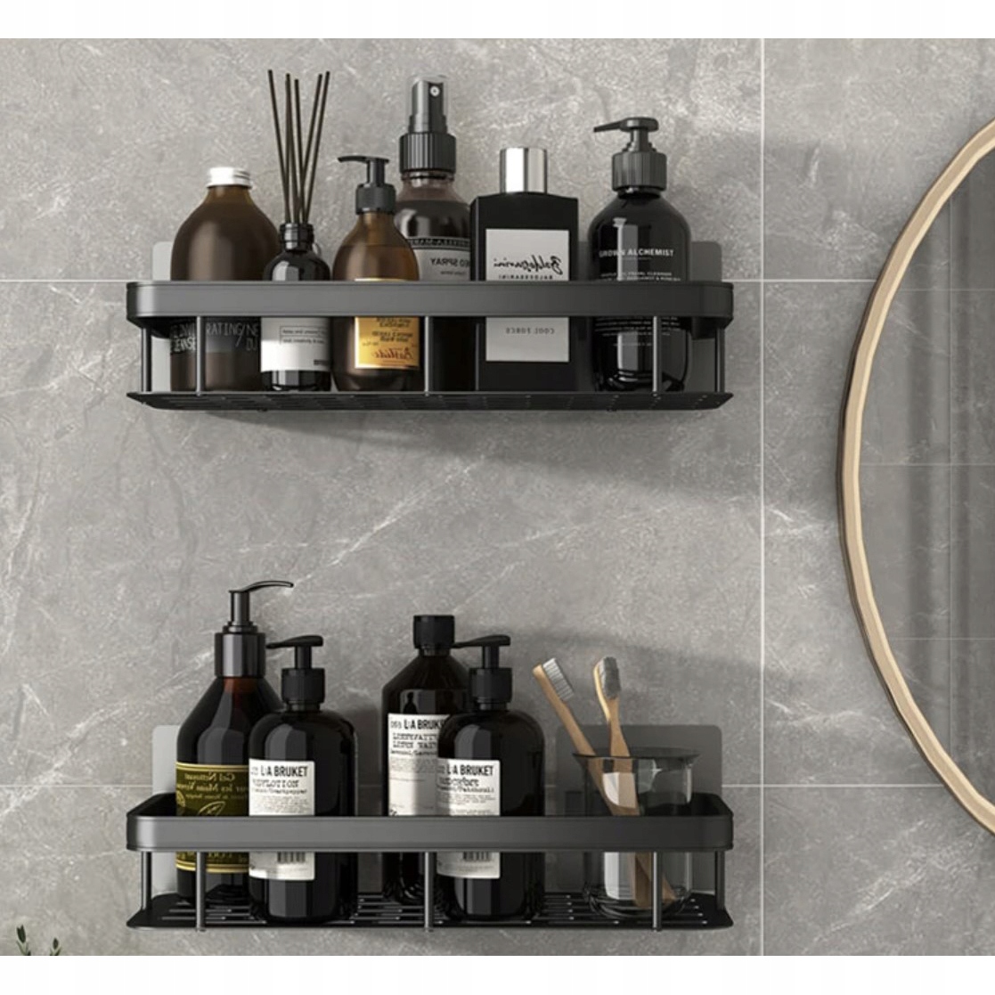 Полка ванной комнаты для душа черная кухонная стена подвесная набор x 2