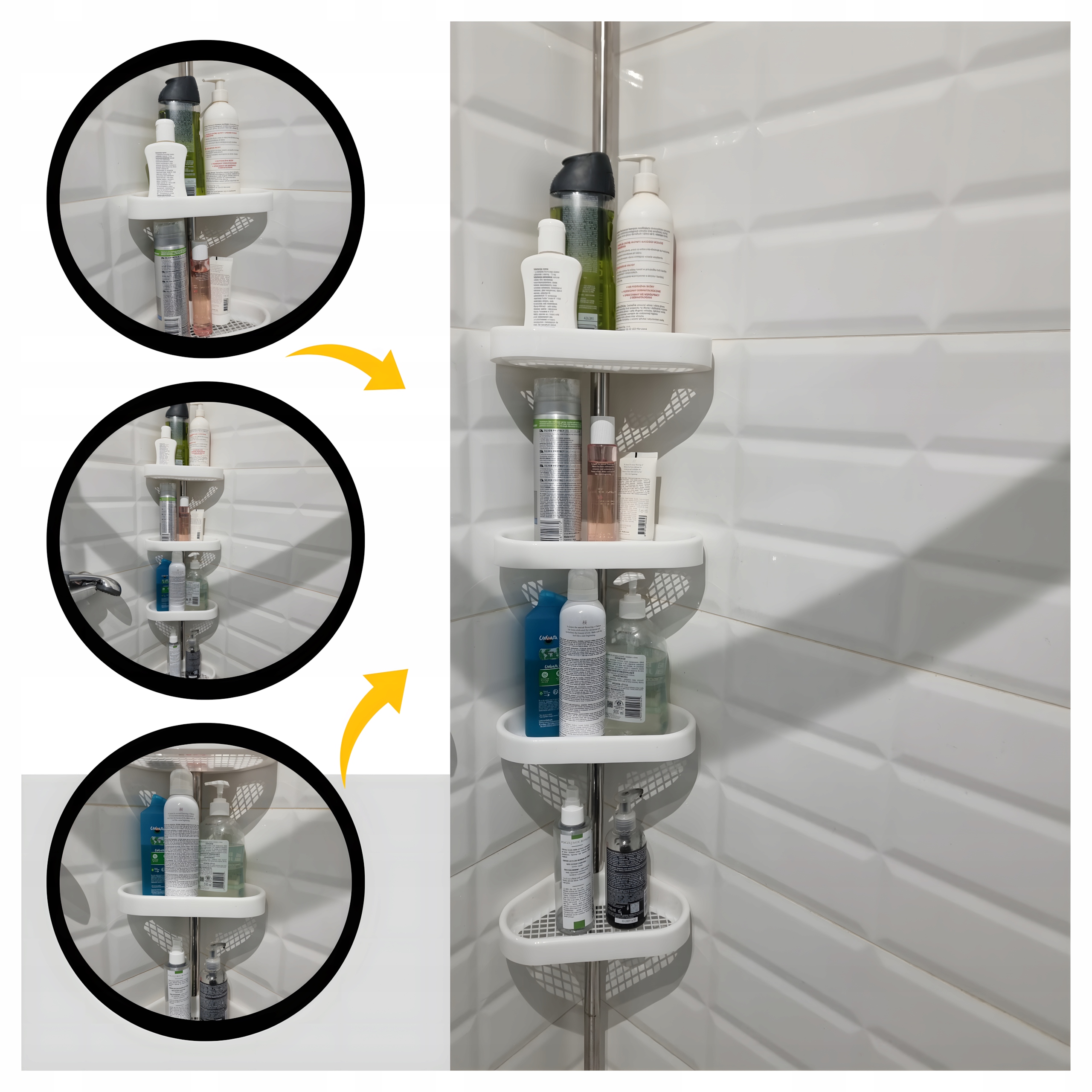 ✅ благодаря регулируемому дизайну, вы можете легко сопоставить его с вашим душем , создав дополнительное пространство для всей необходимой косметики и аксессуаров.