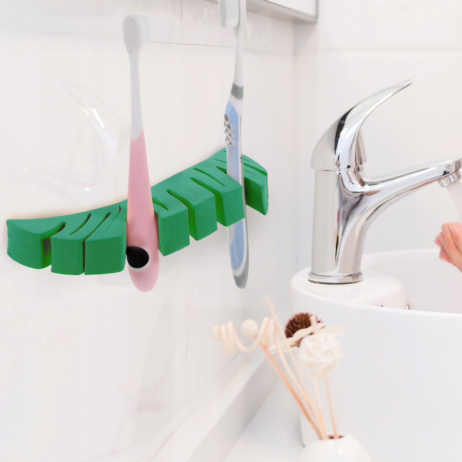 Эта подставка для сушки кистей для макияжа полезна и идеальна, самоклеящаяся, проста в установке, проста в использовании, может использоваться для ванной комнаты, спальни, легко удерживает кисти для макияжа и другие инструменты, креативная форма, форма листа, уникальная и стильная. . Универсальный и полезный, в него также можно положить зубную щетку.