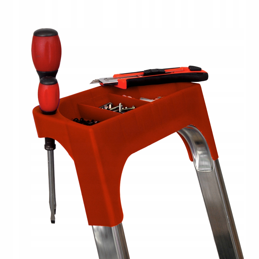 Практическая полка для алюминиевой лестницы – незаменимый аксессуар во время всех домашних, ремонтных и отделочных работ. Благодаря этому у вас всегда под рукой будут все необходимые инструменты, дюбеля, шурупы и аксессуары, без необходимости спускаться и подниматься по лестнице. Прочная конструкция обеспечивает грузоподъемность до 10 кг, что позволяет безопасно размещать не только мелкие предметы, но и более тяжелые инструменты и баллончики с краской. Полка оснащена практичным крючком для ведра и специальными отверстиями для отверток и других инструментов, что гарантирует порядок и удобство в работе.