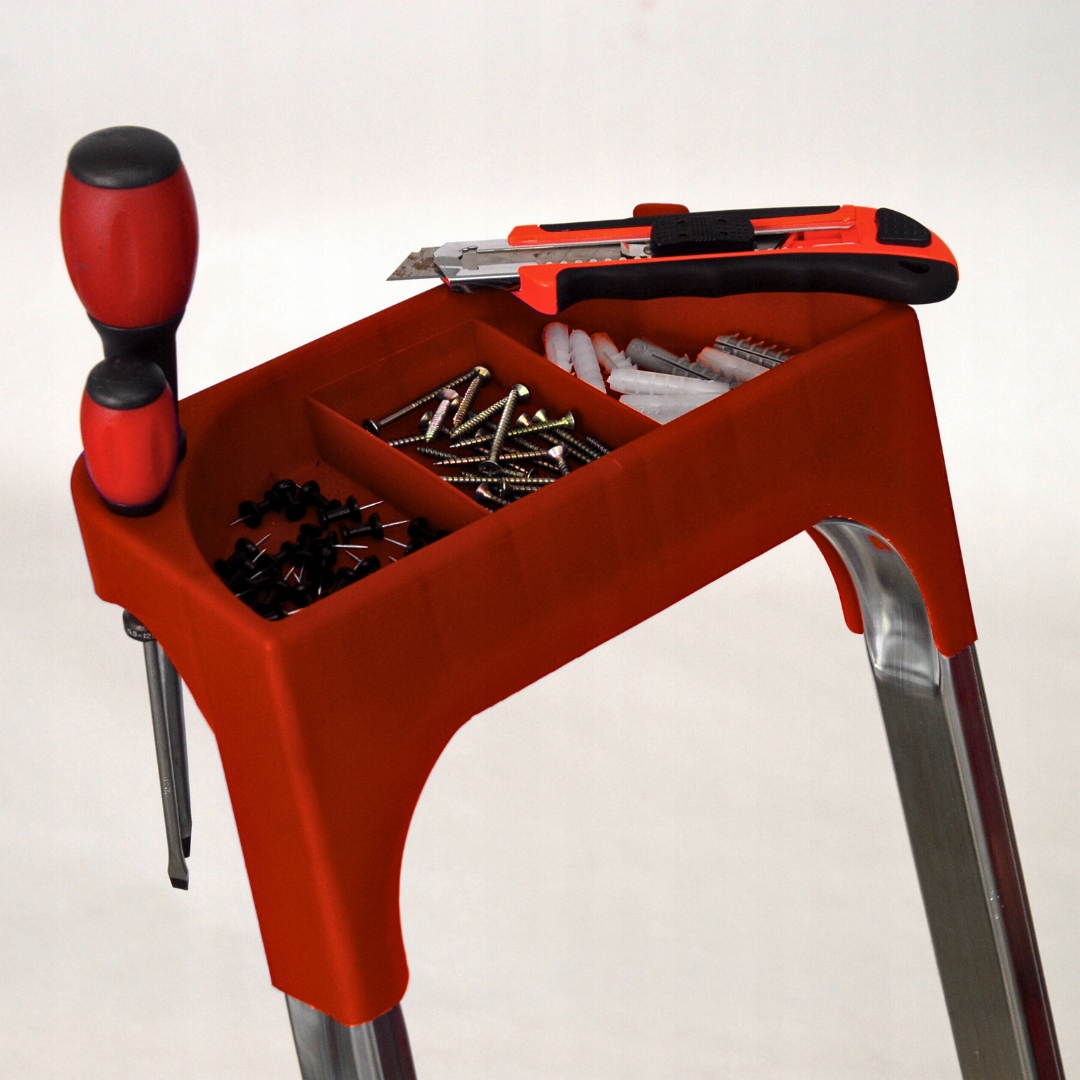 Легкая, но прочная полка значительно повышает комфорт работы, идеально подходит для покраски, мелкого ремонта и домашних работ дома или в саду.